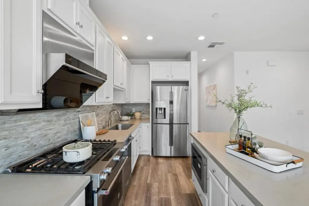 *6-Year-New Townhome Blending Modern Design, Energy Efficiency & Prime Silicon Valley Location. This beautifully upgraded home offers a bright, open-concept layout where the spacious living room flows seamlessly into the dining area and gourmet kitchen, extending to a private patio. The kitchen features quartz countertops, a designer backsplash, a large island, stainless steel appliances, and custom white maple cabinetry. *A desirable bedroom and full bath on the main living level provides flexibility for guests, a home office, or multigenerational living. The primary suite features an ensuite bath and a walk-in closet, creating a comfortable private retreat. Enjoy premium modern upgrades including recessed lighting, central A/C & heating, tankless water heater with water softener & purification system, paid-off solar for significant electricity savings, EV charger outlet, and an attached 2-car garage. *Top-rated schools, including Northwood Elem (9/10) and Morrill Middle School (8/10, 2024 California Distinguished School), plus renowned private options like Merryhill, Stratford, and Challenger. Walk to Milpitas BART with quick access to Highways 880, 237, and 680 for an easy commute to major tech employers. Close to Great Mall, Trader Joes, H Mart, Costco, 99 Ranch, and more.