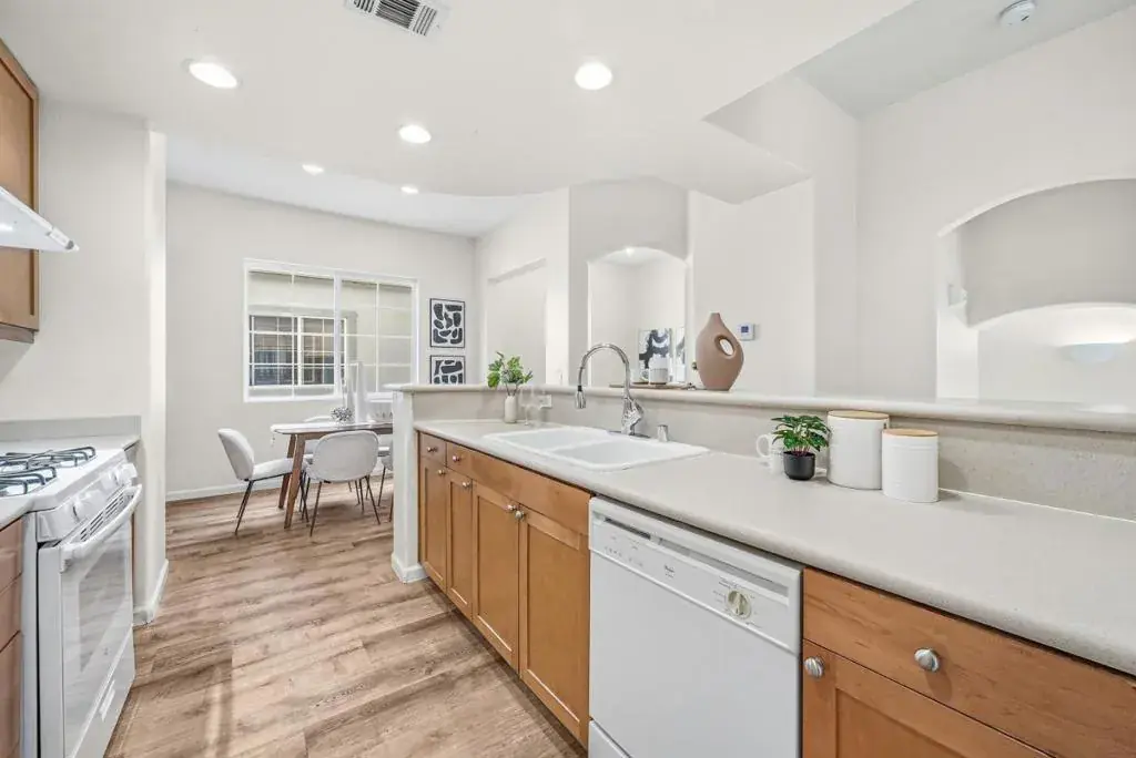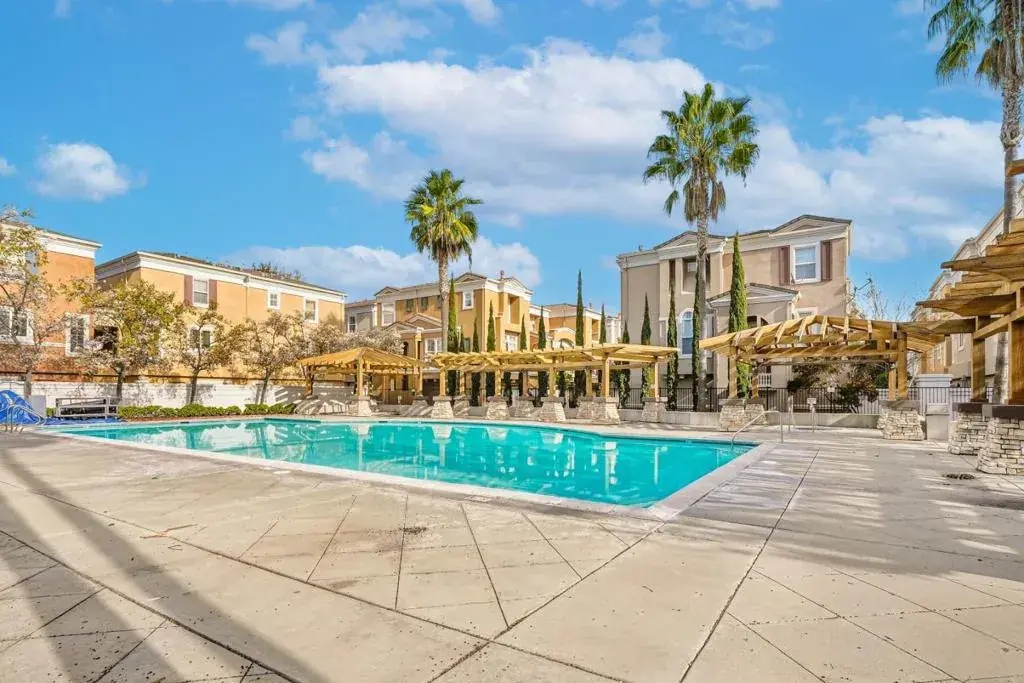 Welcome to this beautifully appointed 3b3.5b end-unit townhome in the desirable Parc Metro community, just steps from The Great Malls premier shopping, dining, and entertainment. Designed for both comfort and sophistication, this home features a bright open-concept floor plan with soaring ceilings and an abundance of natural light throughout. Enjoy three private en-suite bedrooms, plus a versatile den perfect for work or study. The formal dining area flows seamlessly into the inviting living room with a cozy fireplace. New flooring enhances the main level, complemented by fresh paint and modern lighting fixtures. As a coveted end unit, the home offers extra privacy and sunlight, along with a sunny private patio ideal for relaxing or entertaining. Additional highlights include an attached 2-car garage, extra permitted parking, and convenient in-unit laundry. Residents enjoy low HOA dues and resort-style amenities including a gym, pool, spa, clubhouse with full kitchenette, meeting/party space, and a large park with play structures. Perfectly located for commuters with easy access to BART, VTA, Light Rail, and major highways, plus close proximity to Fremont, Santa Clara, San Jose, and leading tech campuses.