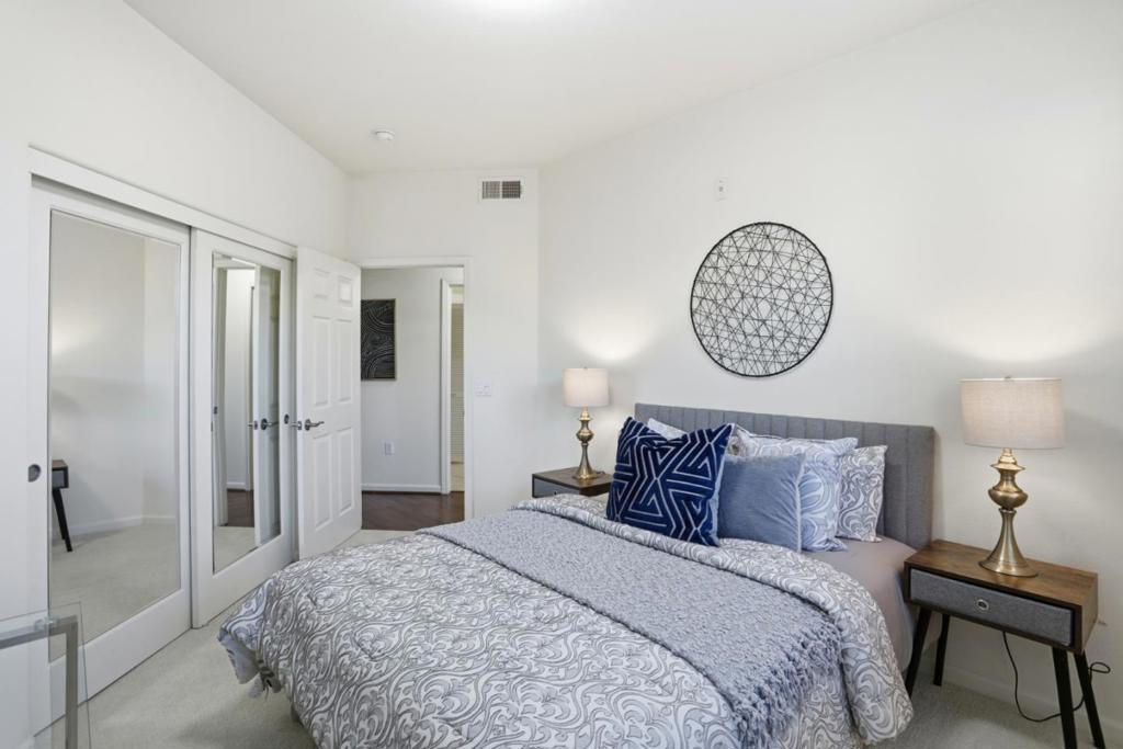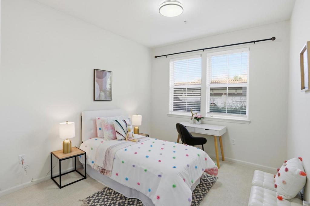 Welcome to your new home in Milpitas, and move-in ready! Single story condo! Bottom floor, with easy access! from outside. One of the few units with 2 car separate enclosed garages, and an extra storage closet (approx, 4 X 8). This South-facing corner unit includes many windows to maximize light throughout each room. The home features 1421sf of living space with three bedrooms and two full baths with indoor laundry. Tasteful upgrades include manufactured hardwood floors, lush carpet, and tile floors. The kitchen includes stainless steel appliances with dishwasher, microwave and refrigerator with a breakfast bar and additional dining area. Multiple bedrooms with walk-in closets. The primary suite includes dual sinks, an oversized tub and stand alone shower. The oversized private patio area is perfect for enjoying evening sunsets, dining al fresco and getting some fresh air. This unit is easy access to the park, the pool, the gym and spa amenities. Enjoy excellent Milpitas schools. Close to Bart Station, VTA Light Rail and bus stations, major freeways and shopping centers. This is one you won’t want to miss!