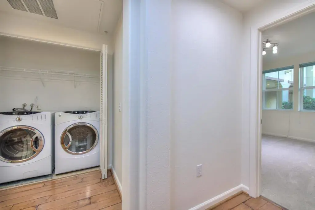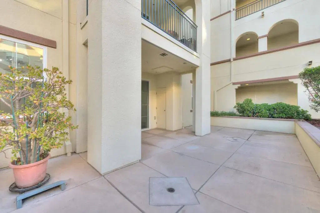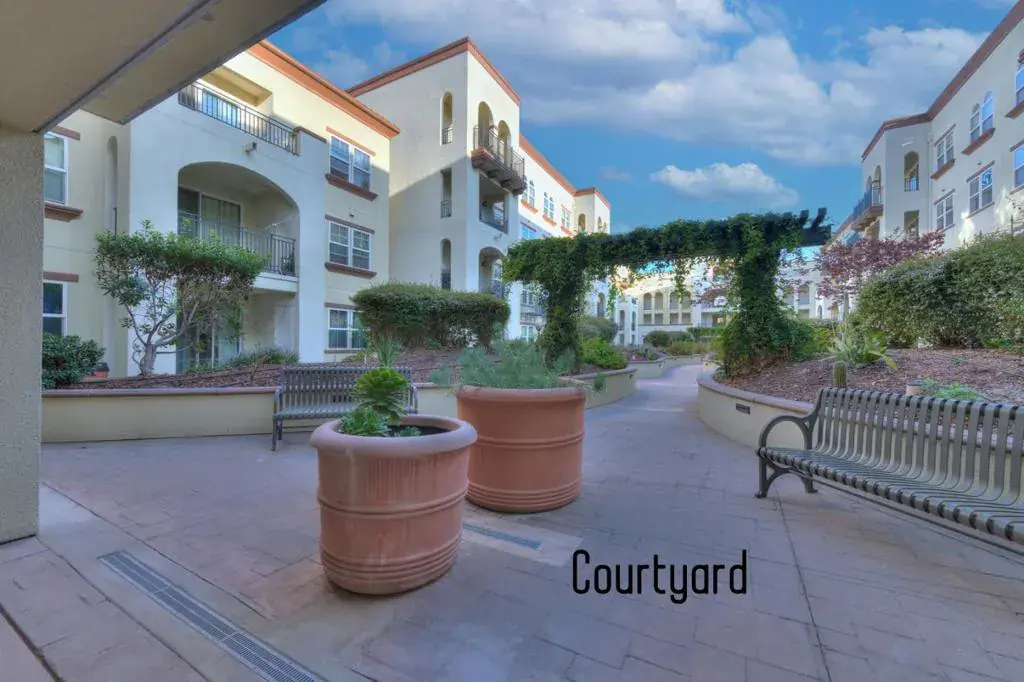 Discover this beautifully upgraded 2-bed, 2-bath, 1,259 sq ft single-level condo, built in 2007 and lovingly maintained by its original owner, located on the serene courtyard level (2nd floor) of the Terra Serena Luna community. No neighbor on one side, the spacious west-facing patio enhanced with lush greenery that offers natural privacy extends your living space and pairs perfectly with the open layout, making it ideal for relaxing, entertaining, and providing a great space for children to play and explore. The spacious primary suite features a walk-in closet, double vanity, soaking tub, and separate shower. Upgrades include stylish engineered hardwood floors, granite kitchen countertops, new carpet, fresh paint, new stainless steel appliances, new energy-efficient LED lights, and new ceiling-mount LED fixtures. Enjoy in-unit laundry, central heat and A/C, two detached private garages, and a nearby exterior storage room. The unit is also just steps from both the elevator and stairs. Community amenities include on-site EV charging stations, a clubhouse, gym, pool, jacuzzi, BBQ area, playgrounds, landscaped courtyards, and elevators. HOA dues include water, garbage, and insurance. This condo is within walking distance of the Great Mall, light rail, BART & a nearby park.