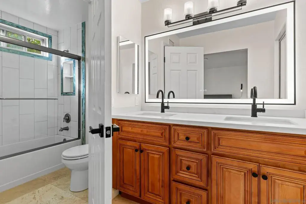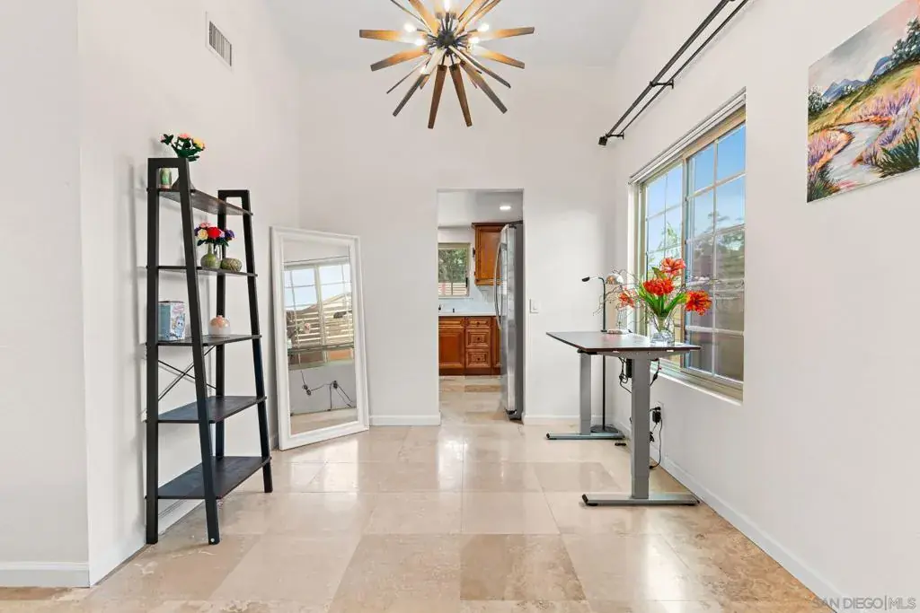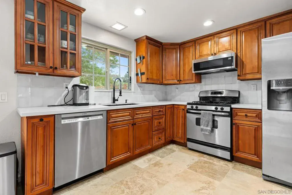 Stunning, beautifully updated single-story home offering rare privacy, premium upgrades, and effortless living. Located on a rare double cul-de-sac, corner lot, this home backs to a wide open trail area, delivering a peaceful, private, and truly tranquil setting in highly desirable Northwest Mira Mesa. The sun-filled open floor plan showcases numerous upgrades, including a newer roof, vinyl windows, updated HVAC system with air purifier, newer water heater, and more. The beautifully remodeled kitchen features stainless steel appliances, while both bathrooms have been tastefully updated, complemented by modern lighting and on-trend finishes throughout. The bright and inviting family room is filled with natural light from skylights, creating a warm and open atmosphere ideal for everyday living and entertaining. Enjoy low-maintenance living at its best in the beautifully designed backyard featuring professionally installed turf and drainage, newer concrete walkways, fencing, and lush xeriscape landscaping with a newer irrigation system—perfect for relaxing or entertaining. Three citrus trees provide fresh, home-grown fruit year-round. Natural stone flooring flows through the main living areas, with newer carpet and padding in the bedrooms. The spacious primary suite offers a huge walk-in closet and an LED backlit vanity mirror. Backing to the canyon entrance with Lopez Ridge hiking trails just steps away, this move-in-ready home offers the ideal balance of privacy, convenience, and lifestyle. Serene, stylish, and truly special.