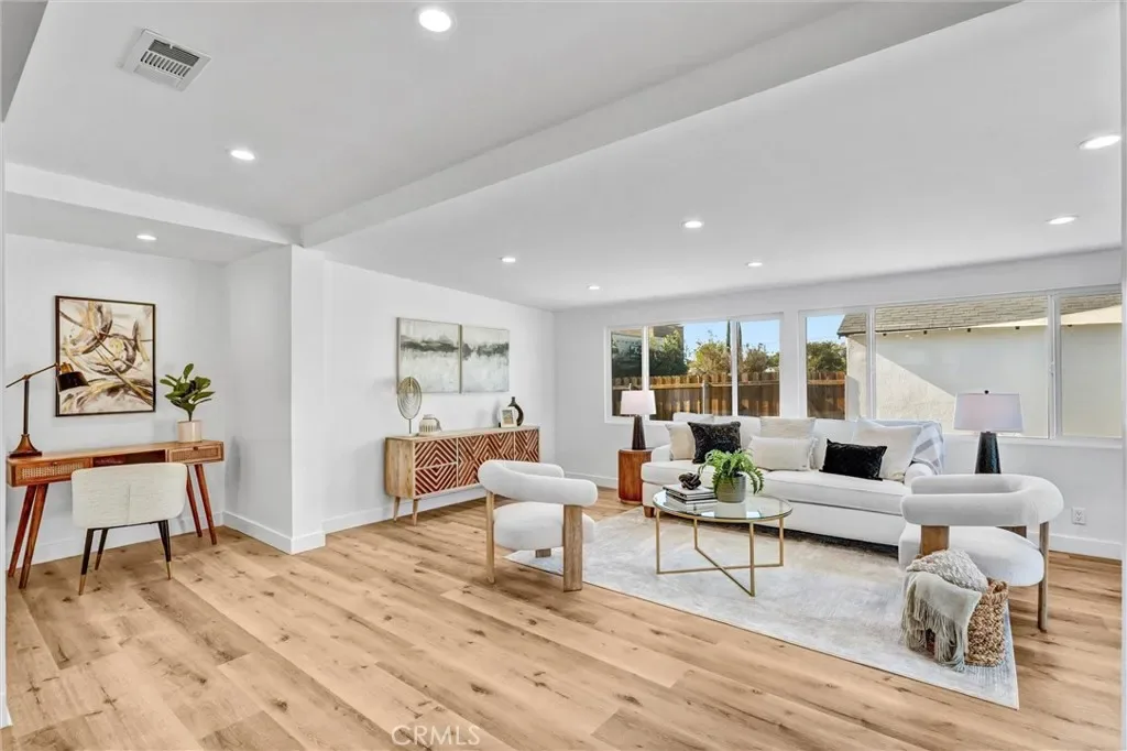 Step inside to a fully renovated interior where every surface has been thoughtfully redesigned. The expansive living room is filled with natural light and flows seamlessly into the dining area and the brand-new chef’s kitchen. The kitchen showcases all-new custom cabinetry, quartz countertops, designer backsplash, stainless steel appliances, and an oversized peninsula perfect for entertaining.
