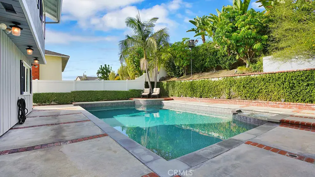 Ensconced within the extremely desirable Aegean Hills neighborhood of Mission Viejo, this well maintained pool home promises the quintessential Southern California lifestyle. Boasting four generously sized bedrooms, a large bonus room (currently used as a fifth bedroom), three bathrooms, 3,253 square feet of living space on a tastefully landscaped 8,162 square foot lot, the home’s quiet location and scale will easily accommodate large gatherings of your loved ones and friends. Upon arrival a picturesque scene greats you featuring a brick driveway, manicured lawn and east facing covered front porch accented by the home’s white exterior trim and red bougainvillea. The covered porch is an ideal place to enjoy the last rays of sunshine. Enter the home through oversized double doors to a grand vaulted ceiling, a skylight the allows natural light to illuminate freshly painted walls, engineered wood floors, new carpet and a pass through fireplace that connects the living room with dining room. There are two seating areas in the backyard located just outside the dining room’s sliding glass door. There is space to seat six beneath the existing sunshade and additional seating for four beneath the hardtop gazebo near the outdoor fire pit as well as a grassy side yard with vinyl fence leading back to the front yard. The open concept between the kitchen and family room is the heart of the home and stretches along the rest of the backyard with clear sight lines of all the fun that will be had in the pool and spa. Upgraded solid wood cabinets, pots and pan drawers, a stainless steel refrigerator, an electric double convection oven, six burner gas cooktop, a pantry and plenty of storage are some of the features the kitchen provides. The adjacent family room has a custom built-in entertainment center with additional storage and desk. A separate laundry area with more cabinet storage, hall bath with step in shower, two additional closets and wet-bar complete the downstairs. The spacious primary bedroom features a cozy gas fireplace, private balcony, separate dressing area, walk-in closet as well as an ensuite bath with step in shower and dual vanity. Three additional bedrooms, a large bonus room and jack and jill bath with dual vanity and tub complete the upstairs. A low tax rate, no HOA or Mello Roos, access to Saddleback Valley’s top rated schools and conveniently located near major freeways, shopping and dining are a few more benefits this home provides.