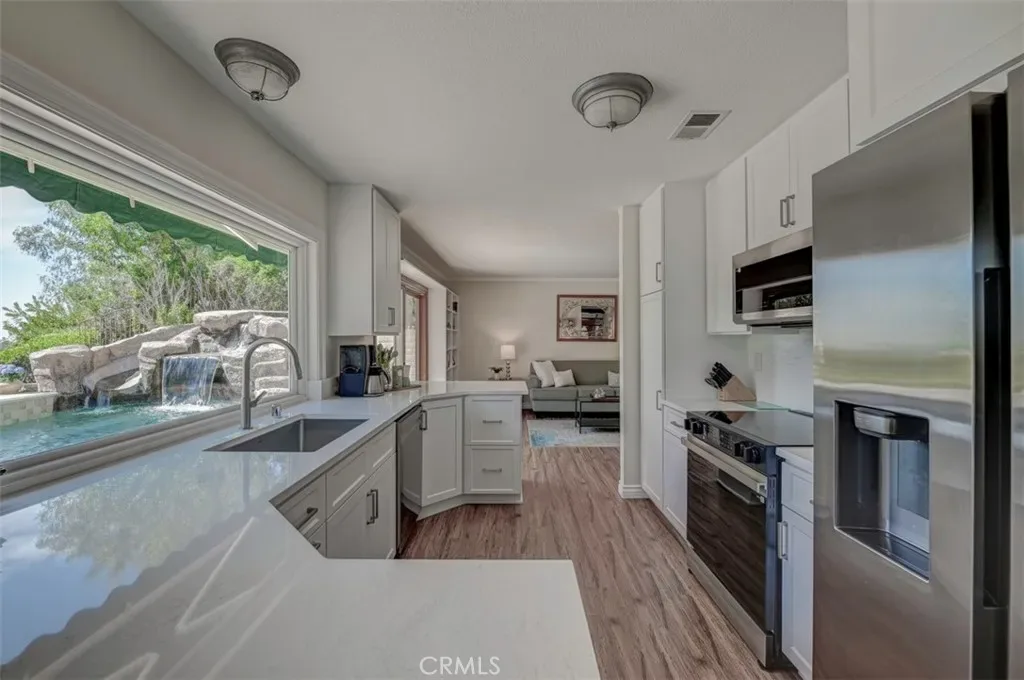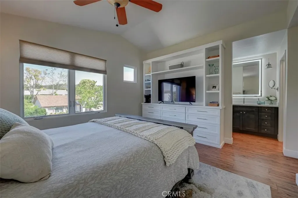 PANORAMIC VIEWS*ROCK POOL & SPA*CASCADING WATERFALL*WATER SLIDE*OUTDOOR KITCHEN*DETACHED STUDIO*RV/BOAT PARKING*DOWNSTAIRS BED & BATH*UPDATED KITCHEN & BATHS*LAKE MISSION VIEJO! Love Life in this Home, where backyard dreams come true! This stunning home features spectacular views to Newport Beach and beyond, a rock pool and spa with cascading waterfalls, and a fun-filled water slide, creating your own private resort. Whether hosting guests or enjoying a quiet evening, this outdoor space offers versatility throughout the year. An outdoor kitchen with built-in barbecue, refrigerator and bar seating along with multiple seating areas creates an ideal place for both entertaining and everyday enjoyment. This home offers a downstairs bedroom and bathroom with a walk-in shower that provides flexibility for guests, a pool bath, or for multi-generational living. Natural light fills the home, with vaulted ceilings in the living room and a cozy fireplace. The family room serves as the heart of the home. Sliding glass doors open directly to the backyard—creating easy access to the pool and entertaining areas. The updated kitchen features generous quartz countertops, stainless appliances, and a large window overlooking the pool, offering panoramic views while preparing meals. The dining area is conveniently located for both casual dining and hosting. Upstairs are three bedrooms and two baths. Vaulted ceilings, built-in cabinetry, and views toward Saddleback Mountain are featured in the primary bedroom. The en suite bathroom includes a walk-in shower, custom sink & cabinetry, and a custom closet organizers. Two additional bedrooms and a bath offer space for a variety of uses. Additional bonus features of this house includes a detached Studio adding valuable space, ideal for your home office, gym, or music room, and side yard parking for an RV/Boat or sport vehicle parking for an active lifestyle while saving on storage fees. With a combination of indoor comfort, outdoor fun, and scenic surroundings, this property offers a unique opportunity in a highly sought after neighborhood with Lake Mission Viejo membership. Close to the Lake, hiking trails, shopping, restaurants and golf courses. You don’t want to miss this one! Schedule your appointment today!
