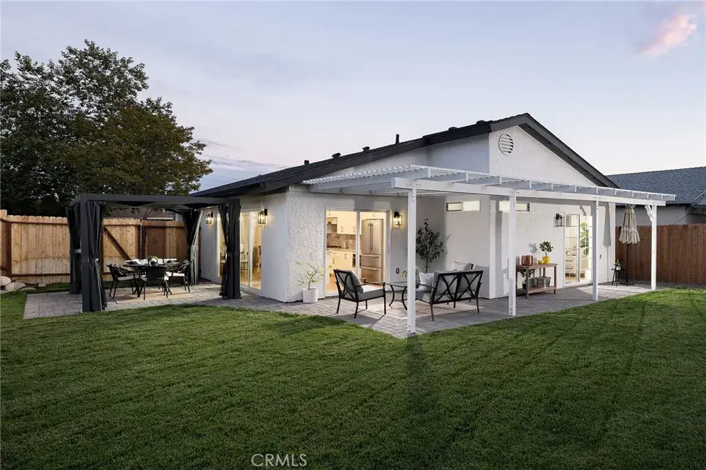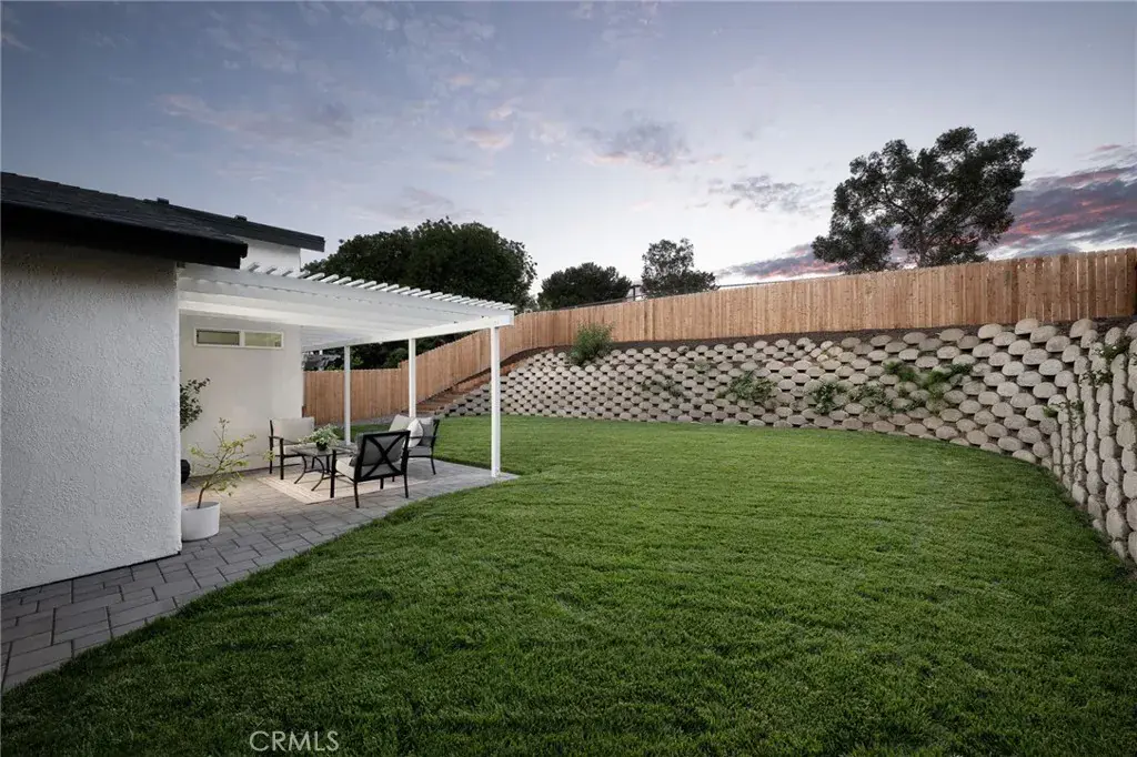 Inside you’ll be welcomed by soaring vaulted ceilings and a bright, open living space that flows seamlessly into the chef’s kitchen. Outfitted with restaurant-grade Forno appliances, sleek custom cabinetry, and quartz counters, this kitchen was built for both style and performance. A 12-foot sliding French door opens to the new patio and modern pergola, creating the ultimate indoor-outdoor living experience. The 6,000+ sq. ft. flat lot offers endless possibilities for entertaining, gardening, or simply relaxing in the California sunshine.