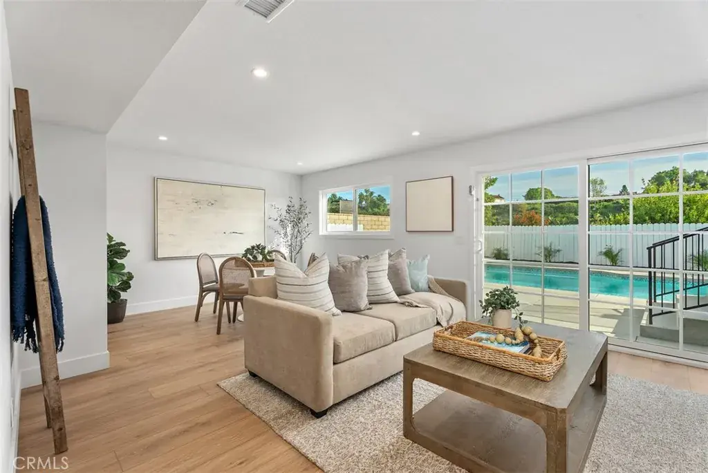 Welcome to this one-of-a-kind professionally custom designed home with top quality finishes, centrally located near schools, shopping, parks and freeways. All new construction on this home was performed by a licensed contractor and fully permitted and inspected by the city of Mission Viejo. With four bedrooms, three full bathrooms and a sparkling pool and spa in over 2400 square feet, this home has it all: new PEX plumbing, completely rewired electrical, new air ducts and insulation, tankless water heater, new plumbing fixtures, Milgard dual pane vinyl windows, luxury vinyl, marble and tile flooring, soft close custom cabinetry and drawers, quartz countertops, appliances and so much more. The kitchen features a large island, a 36-inch, six burner range with a pot filler and opens to the living room. An adjacent dining room with a built-in buffet, beverage refrigerator and large bay windows creates an open floor plan. A separate family room with a bathroom that opens to the outside for pool access, offers flexibility in entertaining. All living spaces open to the backyard with an inviting pool and spa that are completely brand new, including new rebar, plumbing, plaster, tile, pool filter and heater, also completely permitted by the City. Upstairs are four bedrooms including a primary en-suite with huge oversized shower, dual sinks, separate toilet room and walk-in closet. The secondary bathroom has a tub and shower, dual sinks and a separate toilet room as well. The oversized 2-car garage features a new epoxy floor, finished drywall and a 220V electrical outlet for EV hookup installation. All new landscaping and irrigation complete the beautiful ambiance of this top quality custom home. Many recreational opportunities are available through the Mission Viejo Swim and Racquet Club as well as the surrounding community.