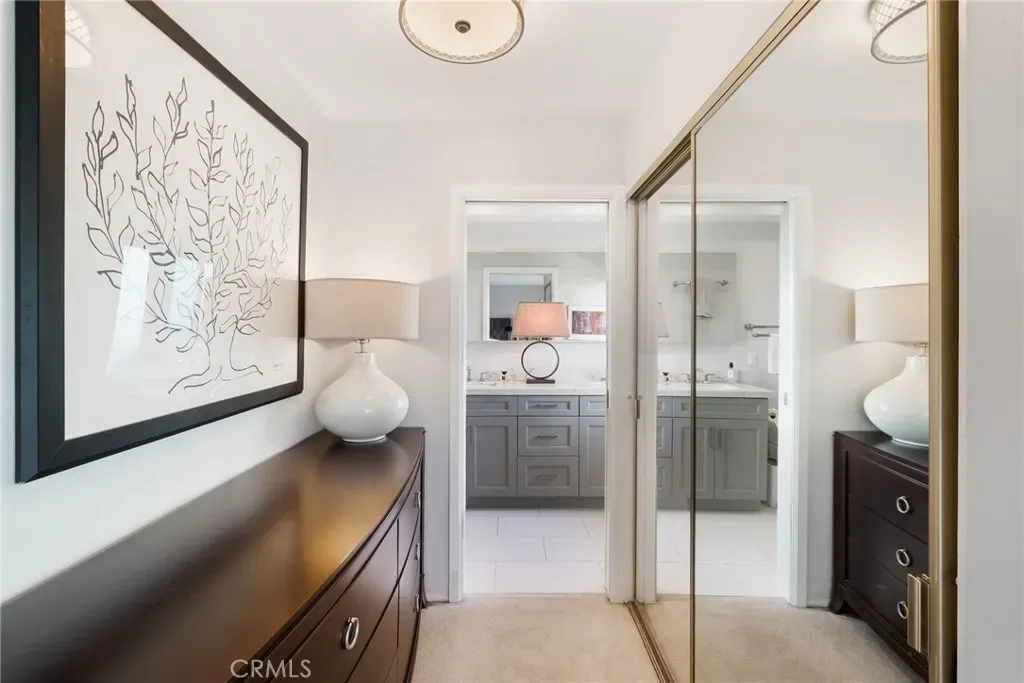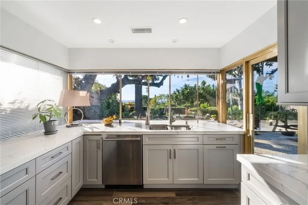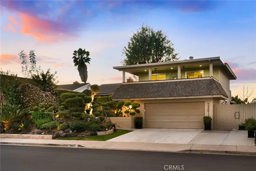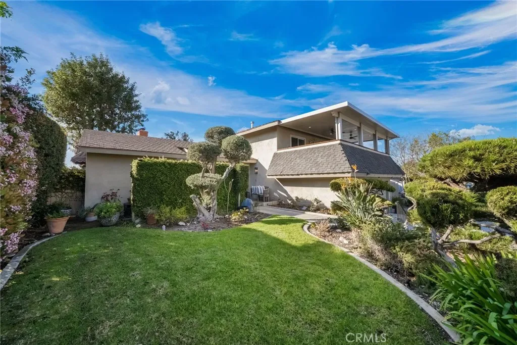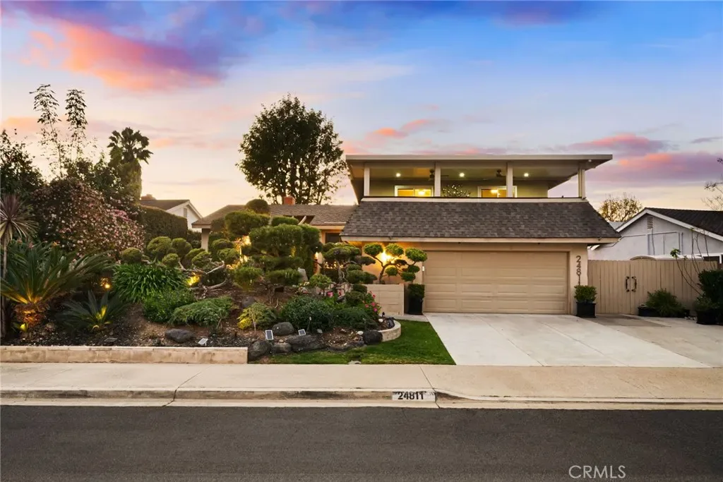 Welcome home to your serene retreat! Nestled in a peaceful central Mission Viejo neighborhood, this beautifully updated mid-century modern house offers a perfect blend of contemporary comfort and timeless elegance. From the moment you arrive, you’ll be captivated by the tranquil zen garden at the entry, setting the tone for relaxation and rejuvenation. As you step inside, sunlight dances through plantation shutters that grace the windows, illuminating the elegant living room complete with a cozy fireplace. Imagine curling up with a good book while savoring breathtaking views of rolling hills reminiscent of the picturesque landscapes of Tuscany, Italy. The heart of the home is the updated kitchen, featuring stunning quartz tile and newer appliances. This culinary haven overlooks the lush backyard, providing a seamless connection between indoor and outdoor living. Whether you are hosting a dinner party or enjoying a quiet meal, the attached dining room offers a perfect setting, with delightful views of the zen garden, making every meal a feast for the senses. Venture downstairs to discover a spacious open family room and library, ideal for family gatherings or a quiet evening retreat. The convenient 3/4 bath adds practicality, while the access to the lower backyard invites you to explore your outdoor oasis. Picture yourself sipping morning coffee as you breathe in the fresh air, surrounded by nature’s beauty. As you ascend to the upper level, you’ll find the expansive primary bedroom, a true sanctuary featuring a private balcony where you can unwind and soak in the stunning views. Dual wardrobe closets and an updated bath with a luxurious walk-in shower and dual sinks offer the comfort and convenience you desire. Two additional bedrooms provide ample space for family or guests, each with access to the open balcony, complete with ceiling fans and thoughtful lighting for enjoyment throughout the day. Imagine the memories you’ll create here, whether it’s watching the sunrise with loved ones or catching an afternoon nap under the shaded patio. With over $150,000 spent on updating, this home seamlessly combines modern upgrades with mid-century charm, making it move-in ready. Don’t miss your chance to own this stunning property. Part of Mission Viejo Swim & Racquet Club.