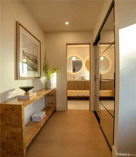 Rarely does a home come along that inspires the senses and elevates perceptions of what modern living can be. This is not simply a renovation — it is a complete re-imagination of lifestyle, executed with intention and precision. Designed with rigorous engineering plans and permits, this transformation stands confidently in a category all of its own. From the moment you arrive, curated landscape lighting guide you through sculpted grounds. Clean architectural lines and a majestic illuminated cactus create a setting that feels both organic and iconic. The arrival alone sets the tone: this is luxury resort living at home. Inside, stunning herringbone wood floors anchor the space in warmth and craftsmanship. A dramatic floating fireplace wrapped in striking stone serves as a sculptural focal point, reinforcing the home’s architectural presence. At the center, a spectacular kitchen unfolds around an expansive 10+ foot island — a true architectural statement designed to evoke connection. European-style frameless cabinetry, Miele gas cooktop, and refined finishes create a space equally suited for elevated entertaining and everyday life. Multiple expansive folding patio doors blur the boundary between indoors and out, opening to a private backyard retreat complete with pool and lush lit landscape. The result is seamless California living – elevated. Offering 4 bedrooms and 4 full bathrooms, plus a generously sized flex space ideal for a bonus room, office, media lounge, or potential fifth bedroom, the layout adapts as life evolves. Over 8200 sqft lot, this permitted renovation added an additional bedroom and full bath, indoor laundry, and reimagined the plan for openness, functionality, and modern flow. The primary spa-inspired bathroom rivals luxury resorts with opulent design, warm wood accents, curated lighting, massage sprays, and a recessed rain shower. Every detail — from smooth drywall to precise mitered edges — quietly communicates quality. Solid white oak fluted interior and exterior doors, vast contemporary stonework, upgraded plumbing and electrical systems with new panel, and a sleek black glass and aluminum garage door reflect just a touch more of the many upgrades that will please. Reminiscent of custom homes in premiere OC communities like Newport and Laguna Beach, this residence delivers an elevated and opulent lifestyle within reach. Lavish yet livable. Refined yet welcoming. This is more than a home. It is a experience. It’s your next chapter.