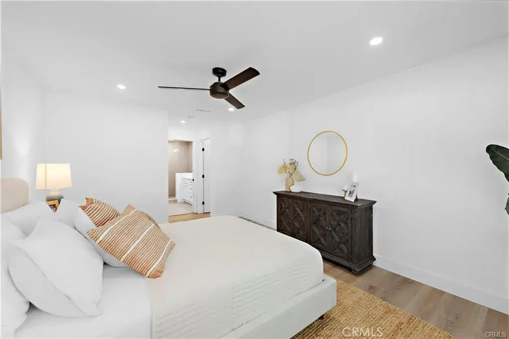Nestled in the prestigious Lake Mission Viejo community on an expansive corner lot, this beautifully remodeled home offers privacy, tranquility, and modern elegance surrounded by mature trees. Recently renovated from top to bottom, the home features an open floor plan with soaring vaulted beamed ceilings, a spacious foyer, luxury vinyl plank and tile flooring, recessed lighting, and a stylish contemporary fireplace in the formal living room. The brand-new designer kitchen is a standout, showcasing stainless steel appliances, quartz countertops, ceiling-height designer tile backsplash, custom shaker cabinetry, and a large center island ideal for entertaining. The separate primary suite provides a private retreat with a spa-like en-suite bath featuring dual sinks, quartz counters, an oversized designer tile shower, and a walk-in closet with built-in shelving, while the secondary bathroom mirrors the same modern finishes. The serene backyard offers a large lawn, multiple patio areas, and a covered patio with built-in lighting, perfect for relaxing or hosting guests. Additional modern conveniences include a 240-volt outlet in the garage ready for EV charging. As part of the Lake Mission Viejo Association, residents enjoy access to private beaches, swim areas, boat docks, parks, sports courts, and a wide range of recreational water activities—making this turnkey home an exceptional opportunity to enjoy both luxury living and an unmatched lifestyle.