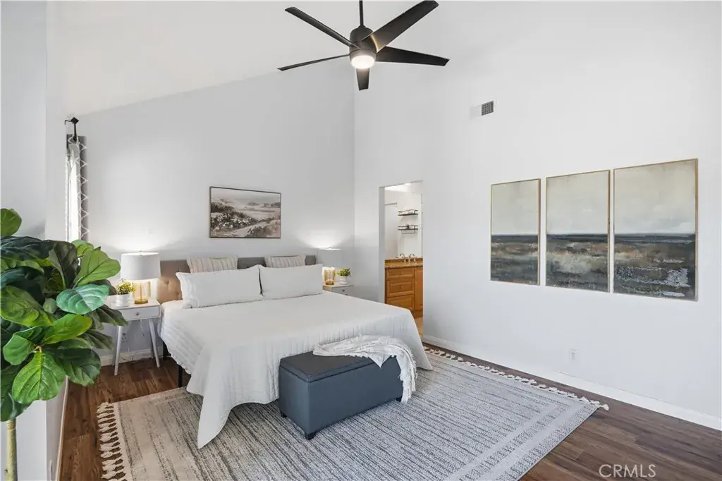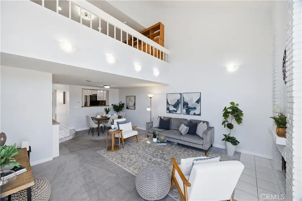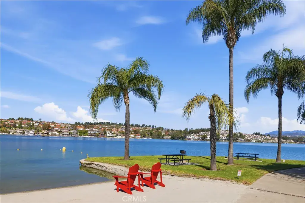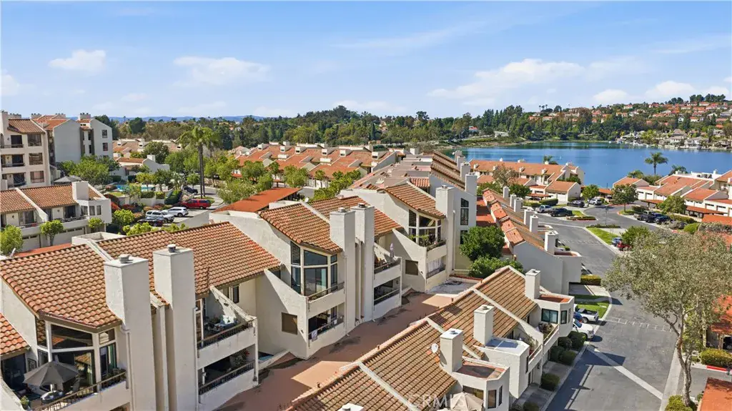 Don’t miss this Mission Viejo condominium with stunning mountain views, located in the gated lakefront community of Finisterra on the Lake. This spacious two bedroom, two bath unit features a large loft, high ceilings and views galore. As you enter this open, light and bright unit, you’re greeted with soaring ceilings and views straight out to Saddleback Mountain. Just off the entry is the kitchen with granite countertops, recessed lighting, breakfast nook, loads of pantry space and stainless steel appliances. The seamless flow of the living area is highlighted by a centrally focused fireplace and new dual pane floor-to-ceiling windows. A new sliding glass door leads to the private balcony where the views continue onto Lake Mission Viejo. The cozy dining area is enhanced by a built-in buffet with granite countertop, wine rack and refrigerator that’s perfect for entertaining guests. The large primary suite features an ensuite bathroom with large walk-in shower, walk-in closet and new dual pane sliding glass door and window with spectacular views. The secondary bedroom is conveniently located away from the primary suite, and offers its own full bath that’s completely remodeled with quartz countertops, shaker-style cabinets and more. Upstairs you’ll find the large loft space with Murphy bed, and a bonus nook that is perfect for a home office or play area. This condominium offers features such as automatic and horizontal blinds throughout, lots of closet space, recessed lighting, ceiling fans, a newer AC unit, detached garage with newer roof, separate private carport, inside laundry area with all appliances included and more. Living at Finisterra on the Lake means you have access to resort-style amenities including a sparkling community pool, private beach, lakeside boardwalk, boat docks, and all the recreation opportunities Lake Mission Viejo has to offer; from paddle boarding and kayaking, fishing, boat rentals, summer concerts, 4th of July fireworks and more. Enjoy the privacy and security of this gated community, with access to top-rated schools, nearby shopping and dining and easy access to major freeways and toll roads. With its unbeatable lifestyle, this is a rare opportunity to own a slice of lakeside living in Mission Viejo.
