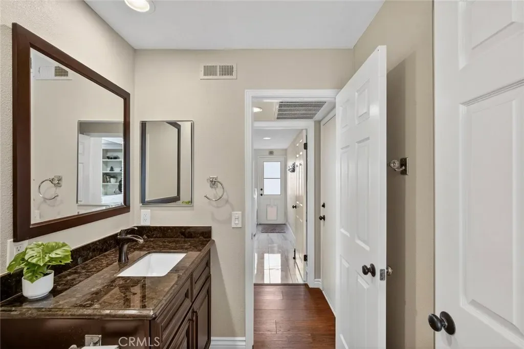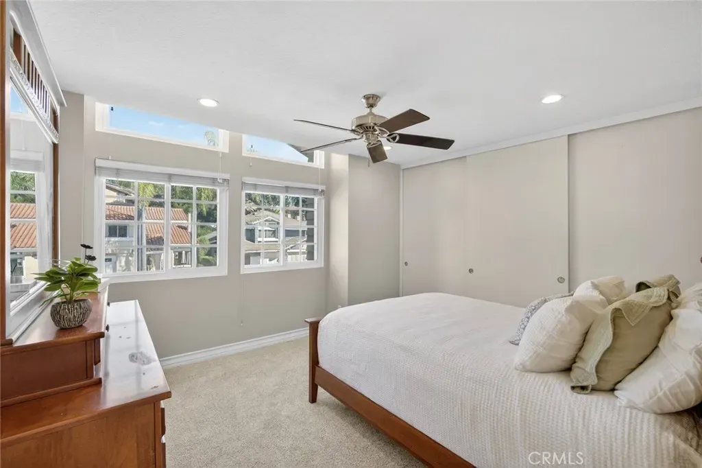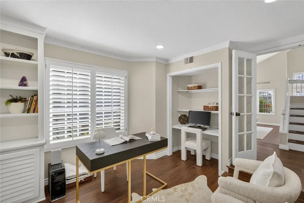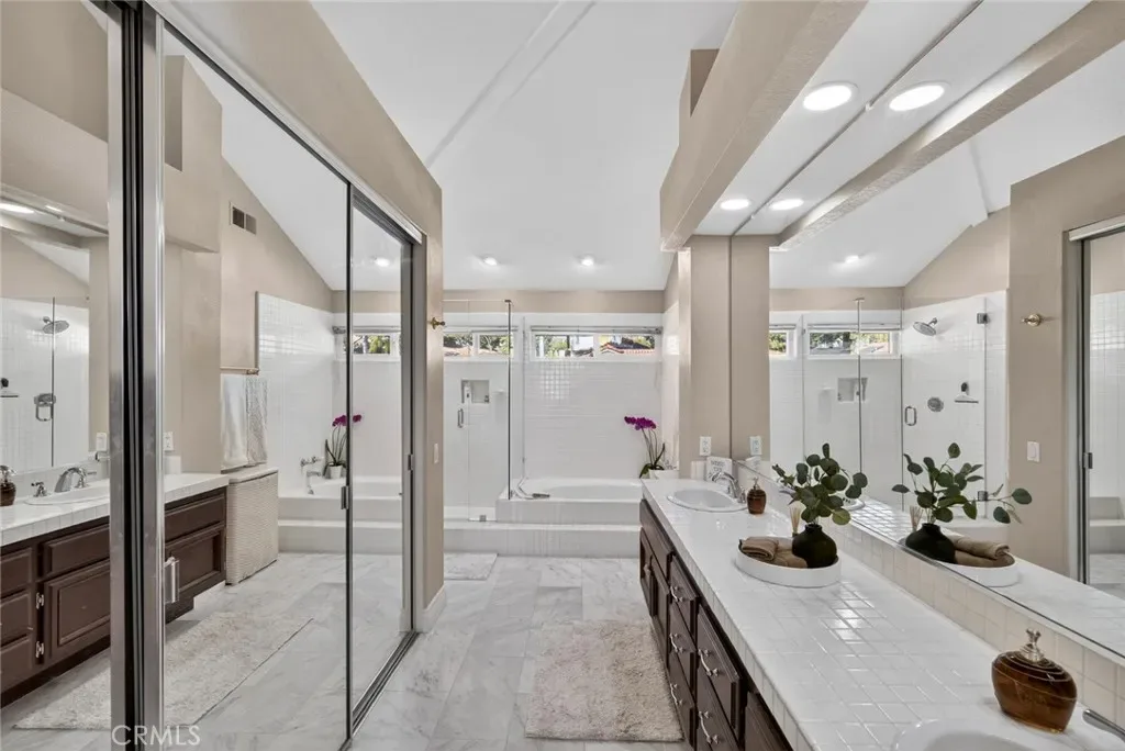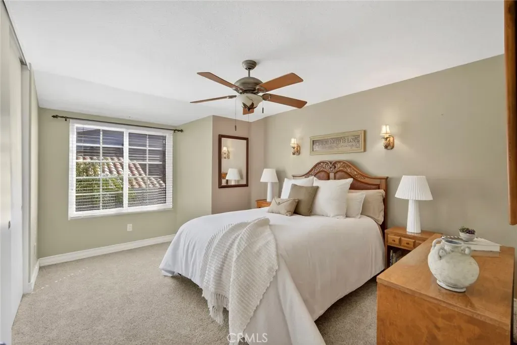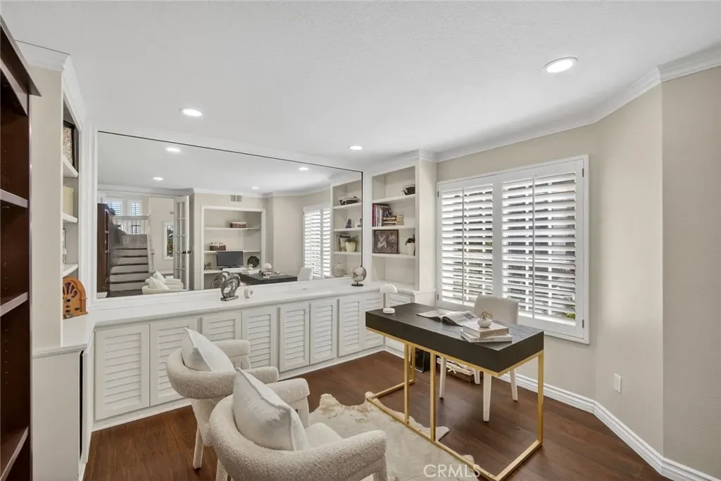 Nestled in a highly sought-after South Mission Viejo neighborhood, this beautifully upgraded 4-bedroom, 3-bathroom home offers approximately 2,520 square feet of light-filled living space with a versatile floor plan. A custom Dutch door welcomes you into the living and dining area, highlighted by expansive cathedral ceilings that create an impressive sense of space. The remodeled kitchen features expanded cabinetry with glass accents, a large granite island, pull-out storage, upgraded appliances, under-cabinet lighting, and a charming greenhouse window. A stylish wet bar with wine refrigerator adds to the home’s entertaining appeal.