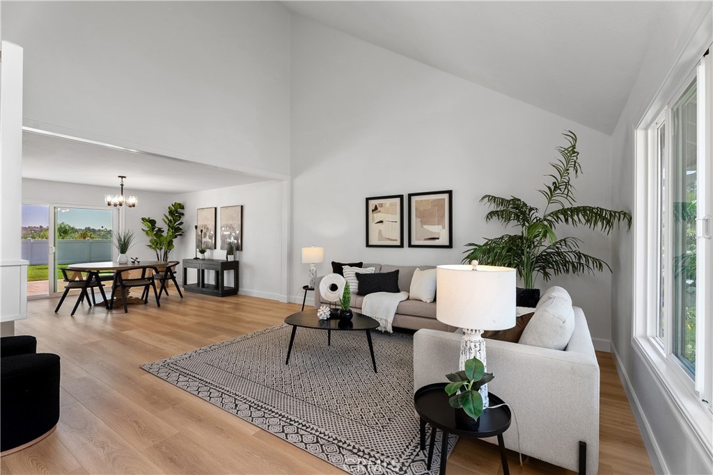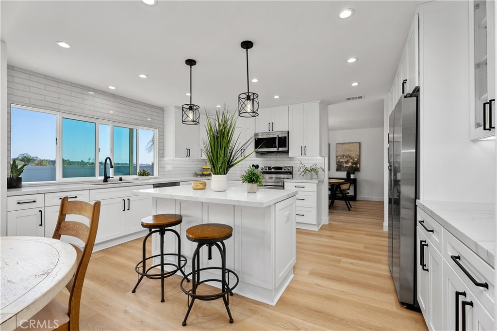 Inside, the home showcases luxury vinyl flooring, updated baseboards, upgraded lighting with recessed lights, and Milgard windows and sliding glass door. The inviting living room features a stunning custom fireplace and wet bar—perfect for entertaining—while the formal dining area is ideal for hosting gatherings.
