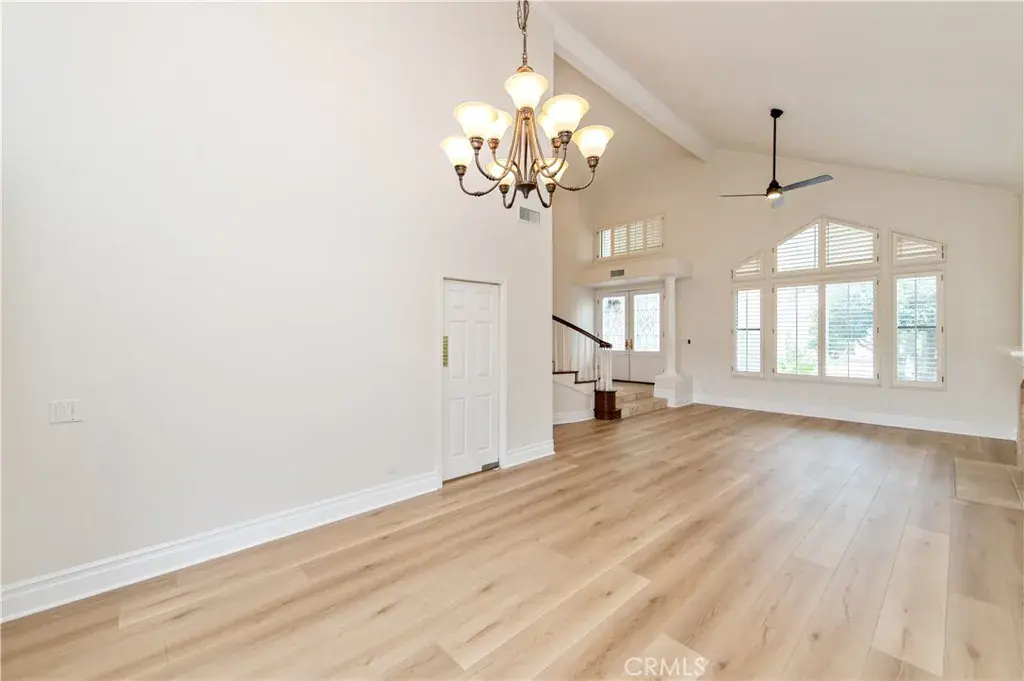 Welcome to 22201 Wayside, a beautifully updated home in the guard-gated community of Canyon Crest Estates. Freshly painted throughout with brand new wood flooring, this 4 bedroom plus bonus room, 3 bathroom residence offers approx. 3,434 sq. ft. of living space with a 3-car garage. The dramatic curved staircase entry leads to formal living and dining rooms and a family room with brick fireplace and built-ins. The gourmet kitchen features a large center island, granite countertops, refrigerator, and custom cabinetry. French doors open to a private backyard with paver hardscape and water fountain. The primary suite offers dual vanities, soaking tub, natural stone finishes, and a private balcony with panoramic views of Lake Mission Viejo, city lights, and surrounding hills. Community amenities include pools, spa, tennis, fitness center, clubhouse, and close distance to Lake Mission Viejo.