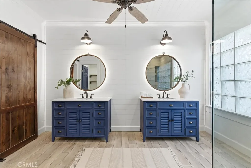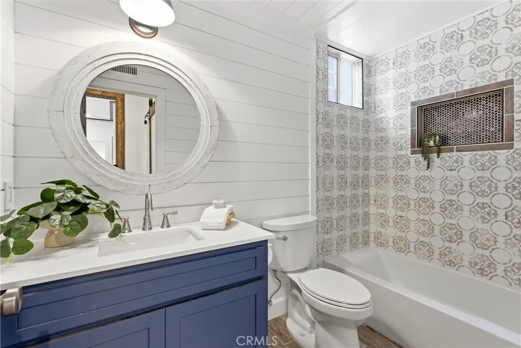 Discover the pinnacle of lakeside luxury in this immaculate European-inspired detached residence, nestled at the end of a quiet cul-de-sac in one of the area’s most coveted gated communities. Crafted for those who appreciate refined living, this remarkable home blends classic sophistication with contemporary amenities. Upon entry, you are greeted by sophisticated upgrades, including ceramic plank flooring, custom shiplap walls and ceilings, refined baseboards, and crown molding. The dramatic reclaimed barn wood accent wall along the staircase makes a lasting impression, while a freshly painted interior in soothing neutral tones enhances the home’s inviting atmosphere. The gourmet kitchen is a culinary masterpiece, featuring floor-to-ceiling custom cabinetry with soft-close drawers and under-cabinet lighting, shimmering quartz countertops and backsplash, a generous center island for gathering, and a professional-grade 36-inch six-burner gas range with convection oven. A suite of top-tier recently upgraded appliances—including a wine fridge, microwave drawer, refrigerator, and dishwasher—ensures both style and functionality. A versatile bonus room awaits, offering the perfect setting for a home office, creative studio, or an optional third bedroom. Every bathroom has been thoughtfully reimagined with premium designer fixtures, contemporary lighting, and luxurious finishes. The primary suite is a serene sanctuary, enhanced by custom shiplap accents, an expansive cedar-lined walk-in closet, and a spa-inspired bath with dual vanities and an oversized walk-in shower boasting dual shower heads, including a lavish rain feature. Additional premium amenities include a cozy gas fireplace, a dedicated laundry room with an oversized utility sink, energy-efficient ceiling fans throughout, woven window treatments, upgraded PEX plumbing, sleek recessed lighting, and enhanced garage storage with attic access. The expansive backyard is designed for entertaining, offering multiple alfresco lounge areas, a built-in BBQ station, outdoor shower, upgraded vinyl fencing, and convenient secondary staircase access. Savor the ultimate resort lifestyle just steps from Lake Mission Viejo, where you’ll enjoy sandy beaches, boating, paddleboarding, fishing, summer concerts, playgrounds, year-round community events, and the luxurious community pool and spa. The property also offers direct access to scenic golf course paths—perfect for daily walks and enjoying the outdoors.