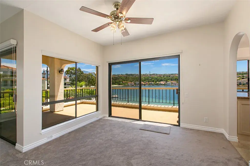 BREATHTAKING PANORAMIC LAKEFRONT VIEWS!! LIVE ON ONE OF THE BEST VIEWPOINTS ON LAKE MISSION VIEJO with a premium location perched high above the community sandy beach. This end unit home offers lots of privacy with no living above, and conveniently situated at entry level access. The floor plan of this Contessa model includes two bedrooms, two bathrooms, living room, dining room, and kitchen with sweeping water views throughout the interior. The upgraded interior has modern and clean color palettes. High end finishes and features include: new kitchen appliances with upgraded kitchen and bathroom countertops. Step outside onto a large wrap around balcony fit for entertaining. Detached two car garage. Situated in the lakefront, private, gated community of Mallorca. Enjoy the excellent amenities that Mallorca has to offer: two pools and spa, private sandy beach, lakeside boardwalk and lake access, along with the option to exercise membership to Lake Mission Viejo.