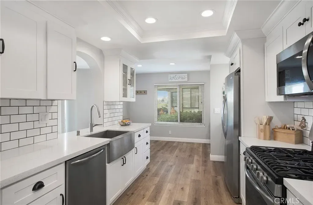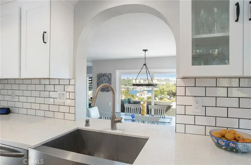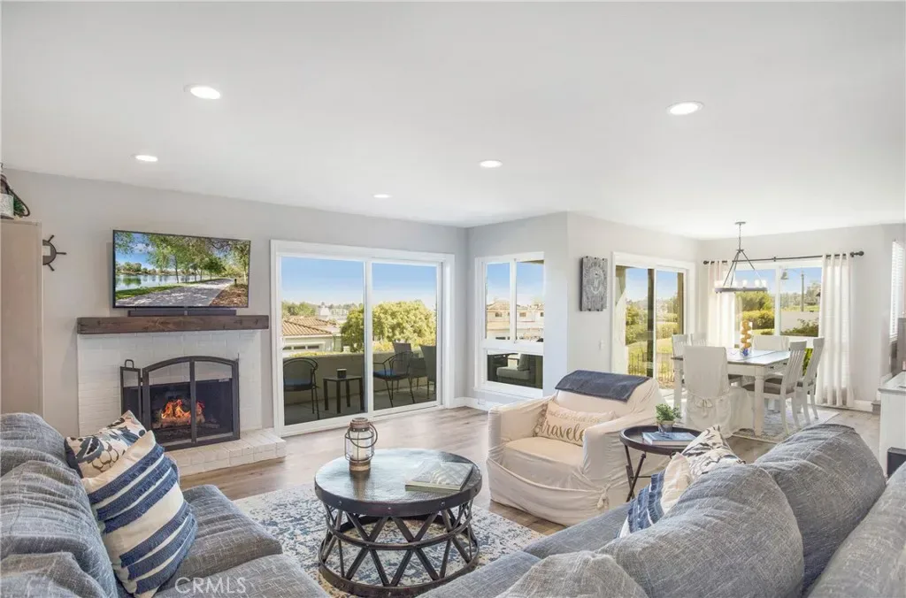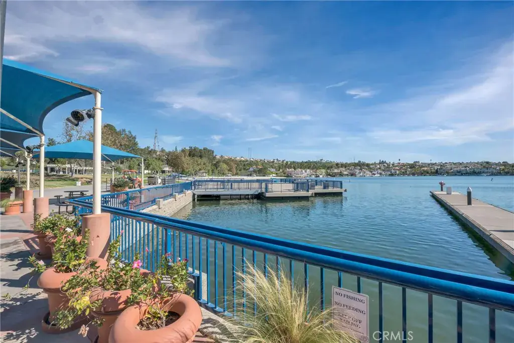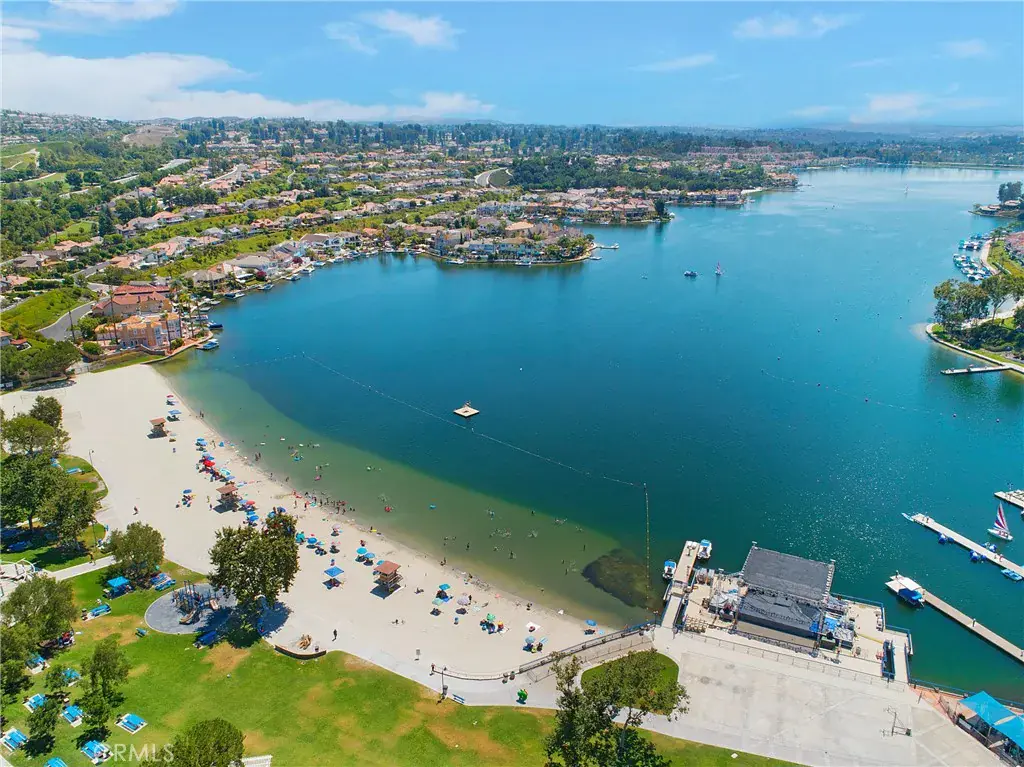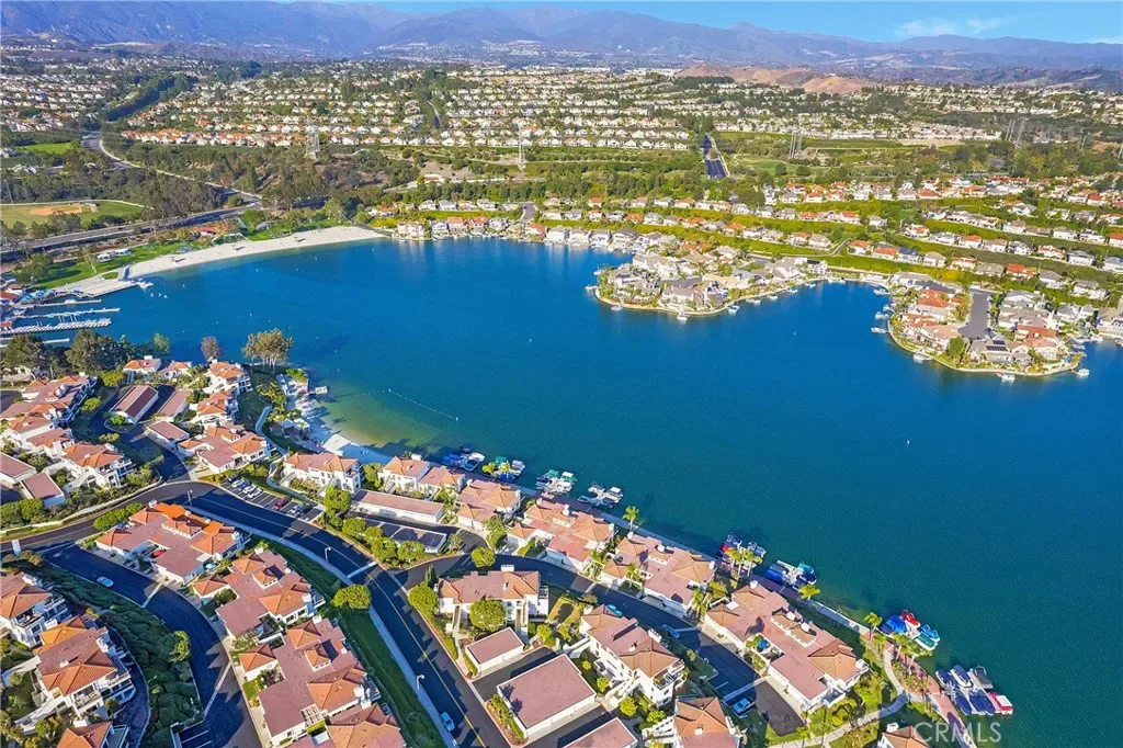 From the moment you step inside you are greeted with panoramic lake and mountain views. Located in one of Mission Viejo’s most sought-after guard-gated lakefront communities, this stunning home is perched on a quiet cul-de-sac offering unobstructed views of Lake MV, Saddleback Mountains and breathtaking sunsets. Spacious open floorplan seamlessly connects the living areas with walls of glass opening to a private patio surrounded by greenbelts—creating an ideal backdrop for indoor-outdoor living and entertaining. The home has been remodeled with no expense spared, including new dual-pane windows and sliding doors that flood the interior with natural light. Living room features remodeled fireplace with custom mantel complemented by luxury vinyl flooring throughout the main living areas. The fully renovated kitchen features quartz countertops, designer backsplash, soft-close cabinetry, Gallery stainless steel appliances and charming nook perfect for casual dining, home office or flexible living space. Primary suite is a private sanctuary where you’ll wake up to peaceful lake views and offers expansive closet space with custom organizers, spa-inspired bath showcasing walk-in shower, soft-close dual vanities, quartz countertops, brushed hardware, designer mirrors and lighting. Secondary bath is equally impressive with walk-in shower accented with pebble detail, new vanity and abundant natural light. Even the linen area has been thoughtfully redesigned with floor-to-ceiling custom cabinetry. Enjoy the convenience of a 2-car garage with new smart opener just steps from your private entry. Additional upgrades include new panel doors and hardware, cabinet pull outs, upgraded baseboards, updated electrical, recessed LED lighting, new light fixtures, ceiling fans, washer, dryer and refrigerator included. Bonus opportunity: Electra Craft “Duffy style” boat may be offered for sale after close of escrow. Residents enjoy lake living in a 24/7 guard-gated setting, private beaches, 2 pools, spas, scenic walking trails and Lake MV amenities including boat rentals, sailing club, paddleboarding, kayak slips and storage, playground, summer concert series, fireworks and year-round events. Walk to nearby gym, restaurants and everyday conveniences. Private boat docks are available to residents at low monthly rates. This is more than a home—it’s a lifestyle with effortless access to the water and tranquility defined by lake, mountain, sunset, city light views and effortless luxury