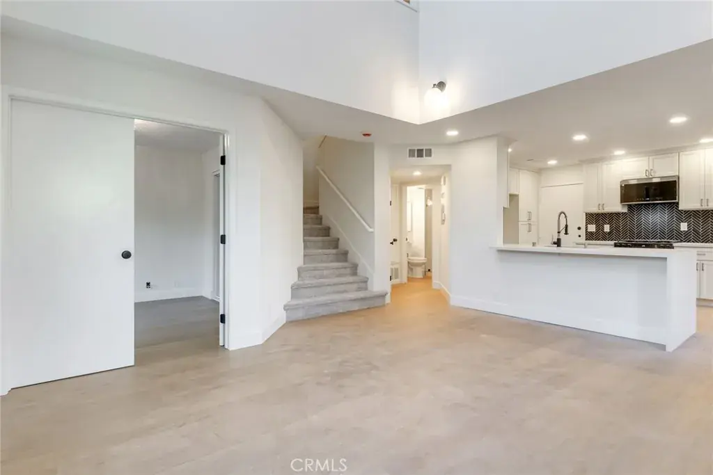 Absolutely stunning showstopper of a condo that lives like a townhouse. This rare end-unit offers exceptional privacy with no one above or below, abundant natural light, and a private gated yard featuring a patio, grass area, and mature landscaping. Ideally located next to one of two recently refinished pools in the desirable Rainbow Ridge community, this home also includes a one-car garage with direct access. Inside, you’ll find a beautifully upgraded and refinished three-bedroom, three-bathroom floor plan, including a convenient first-level bedroom and bathroom with a walk-in tiled shower. The updated kitchen showcases J&K Dove cabinetry, quartz countertops, a decorative backsplash, chic fixtures, and upgraded appliances. Additional improvements include all-new Milgard windows throughout, a central HVAC system updated in recent years, an updated electrical panel, and new lighting and plumbing fixtures. The spacious primary suite impresses with soaring ceilings, a large closet, a remodeled vanity, and an expansive tiled walk-in shower. The upstairs secondary bedroom is privately situated and overlooks the pool. Community amenities also include a playground with tot lot and a basketball court, making this home the perfect blend of comfort, style, and convenience. Don’t forget that the owner of this property gains access to Lake Mission Viejo and all its amenities. Info deemed reliable, buyer to verify.