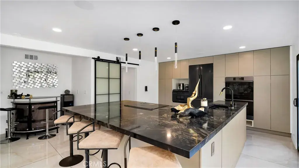 Welcome to your dream home! Nestled on a generous 13,000+ sq ft lot, this open concept residence with a pool & spa offers a rare combination of spacious luxury, modern upgrades, and resort-style living. Featuring 4 bedrooms—including two expansive master suites—and 3.5 beautifully updated bathrooms, this home is thoughtfully designed to accommodate both families and entertainers alike. Upon entry, you are greeted by white marble flooring throughout the main level, a striking black marble TV wall with a built-in electric fireplace that adds contemporary elegance to the main living space. Step inside a chef’s dream kitchen boasting high-end Dacor appliances, push-to-open custom cabinets with pull-out drawers, accent lighting, and an extra-large quartz stone island, providing both style and function. Enjoy additional luxury touches including a modern wine bar under the staircase, water-resistant laminate upstairs, and recessed ceiling lights that create a bright and welcoming ambiance in every corner of this home. The oversized glass sliding doors lead to your private backyard oasis, complete with lush tropical landscaping, swaying palm trees, a spacious swimming pool with a tranquil waterfall, and a relaxing jacuzzi. The expansive yard offers incredible versatility, with ample room to add a pickleball court, basketball court, or even build an ADU—ideal for multigenerational living or investment purposes.The front yard is fully remodeled with brand new turf, decorative white stones, and a water feature, ensuring beautiful curb appeal year-round. Don’t miss this rare opportunity to own a modern, resort-style home with endless potential!