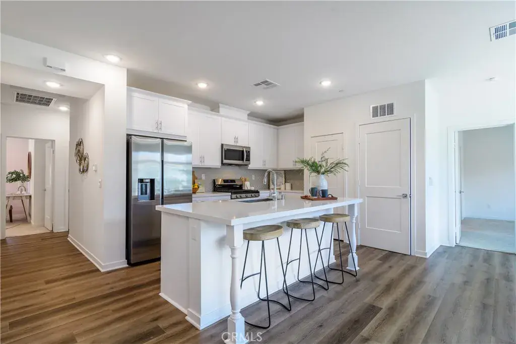Welcome to this luxury townhome in the newly built Saddleback Place community, featuring the highly desirable Plan 4 design. This nearly brand-new home offers over $36,000 in premium upgrades, along with paid solar, a tankless water heater, and an EV charger for enhanced energy efficiency and modern convenience. The open-concept layout creates a bright, airy feel, with large windows filling the space with natural light and showcasing the home’s high-quality finishes. Ideal for both entertaining and everyday living, the residence features 3 bedrooms and 3 bathrooms, generously sized with ample closet space and modern fixtures. Upgraded flooring, sleek countertops, and high-end appliances elevate the living experience, while the living and dining areas flow seamlessly into the gourmet kitchen. Saddleback Place offers resort-style amenities with NO Mello Roos, including a sparkling pool with cabanas, BBQ areas, walking paths, and a tot lot playground. Residents also enjoy easy access to parks, trails, shopping, dining, and top-rated schools. This exceptional townhome is a true gem—don’t miss the opportunity to enjoy modern living in this sought-after community.