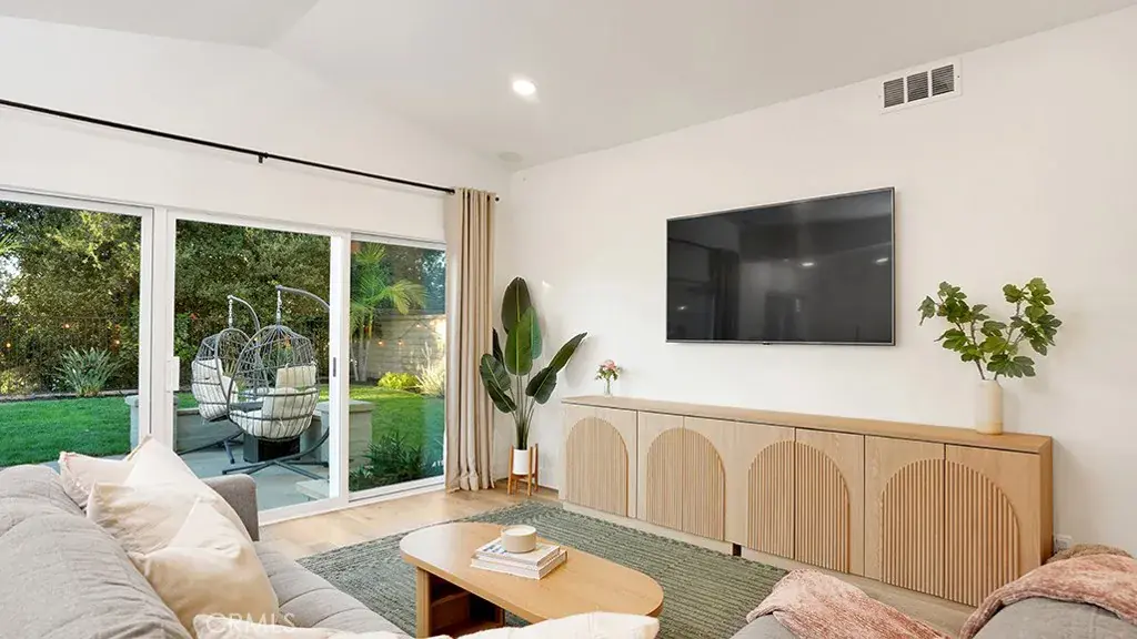 Experience luxury living in this tastefully renovated single level home that features 3 bedrooms, 2 baths, 1,485 square feet of living space on a 5,750 square foot lot with room for a pool. Upon arrival, the home’s intentional landscape and well maintained exterior offers a preview of what you’ll find past the front gate. Enter to a spacious courtyard that is illuminated with string lights and also home to a detached, custom 120 square foot shed that is currently used as an office. The office’s finished interior features dual-pane windows, engineered flooring, recessed lighting and a mini-split AC system that all combine to create an ideal work-from-home environment. Through the double door entry you are welcomed to an open floor plan where the designer kitchen is the centerpiece. Remodeled in 2022 the kitchen features stainless steel appliances, farmhouse sink, new cabinets with soft closing doors and drawers, a pantry and built-in desk off adjacent to the dining area. The kitchen island is well proportioned to the space and provides more storage with built-in cabinets, room to seat four, additional counter space and an aesthetically pleasing waterfall countertop. The open concept design is best illustrated by looking around when being near the kitchen sink; from there you can keep an eye on what’s going on in the backyard, the dining area, family room, front courtyard and inside the office if the curtains are open. Step through the great room’s sliding glass door to a sizable backyard with no neighbors behind, a West-northwest orientation perfect to enjoy sunsets and a pergola well suited for al-fresco dining. During 2022 the owners also replaced the water heater, AC condenser and air handling unit, installed engineered wood floors in the main living areas, carpet in the bedrooms, remodeled the hall bath and more – so be sure to check out the feature and upgrade list. With a low HOA, low tax rate, great schools nearby, only minutes from shopping, dining, parks, access to Lake Mission Viejo with all its amenities and being located within a fiberoptic cable service area, this home may jump to the top of your list. Come see it before it’s gone!