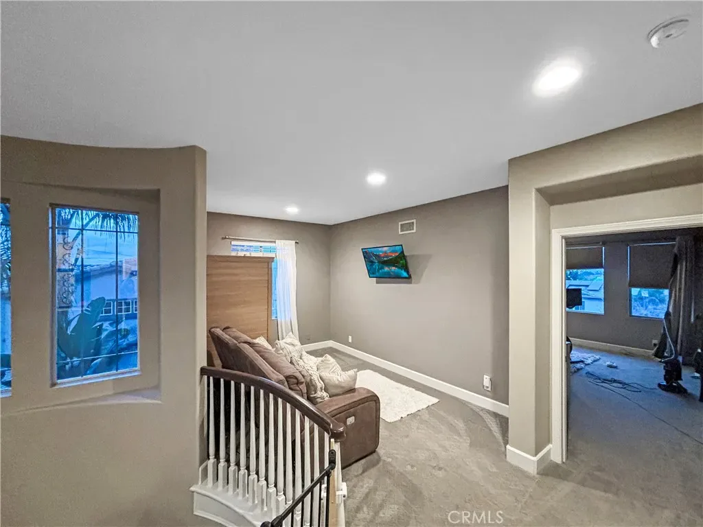 A main-level bedroom and full bath provide flexibility for guests or multi-generational living. Upstairs, you’ll find a spacious loft and three additional bedrooms, including a well-appointed primary suite offering city views. The en-suite bath is designed for comfort, featuring an oversized shower and two expansive walk-in closets.
