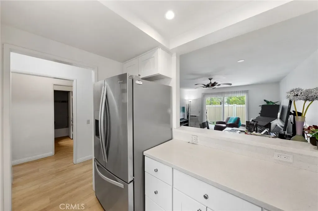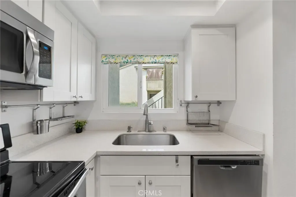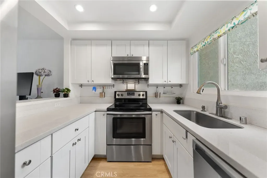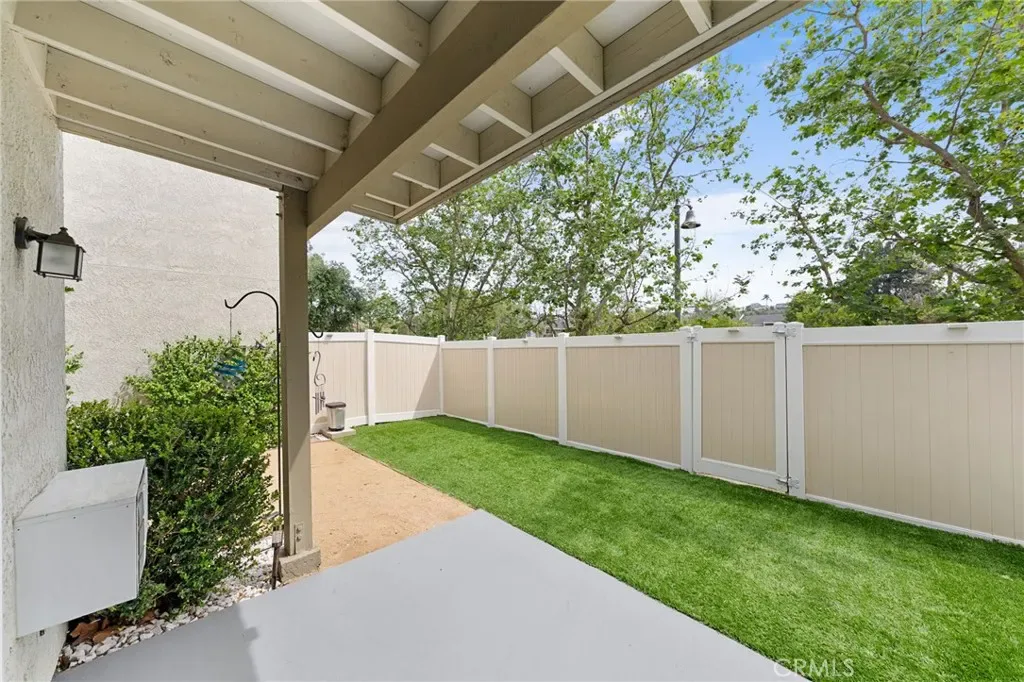 Turnkey, ground-level condo in the heart of Mission Viejo offering comfort, convenience, and style. This 2-bedroom, 1-bath home features a functional, open layout ideal for everyday living. Recently refreshed with new interior paint throughout, and brand-new carpet in both bedrooms, this home feels bright and inviting from the moment you step inside. The kitchen showcases updated finishes including quartz countertops, soft-close white cabinetry, stainless steel appliances, and modern lighting. Both bedrooms are well-proportioned with ample closet space, while the bathroom has been upgraded with contemporary finishes. Large living room with sliding door that leads out to the oversized backyard with artificial turf provides the perfect flow for entertaining or just relaxing after a busy day. Additional highlights include dual pane windows, newer water heater, vinyl wood flooring, and this unit has been re-piped. Additionally, membership to the Lake Mission Viejo Homeowners Association grants access to exclusive amenities such as a clubhouse, private beach, and a variety of community activities including boating, fishing, and summer concerts. This home is conveniently located close to freeways, Shopping, Restaurants, and award-winning schools. Don’t miss the opportunity to make this exceptional home yours and experience the unparalleled lifestyle offerings of Mission Viejo.