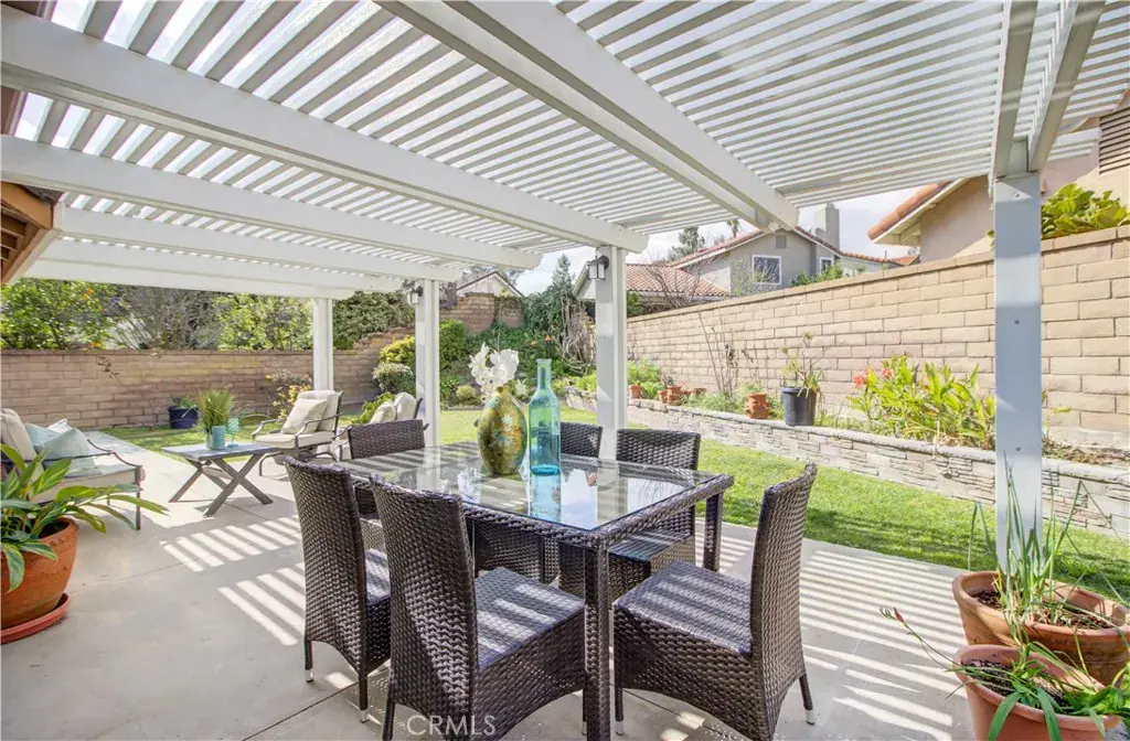 Step outside to enjoy the Alumawood patio cover and expansive lawn, ideal for entertaining or relaxing. The attached two-car garage includes a workbench and built-in storage with ladder access.