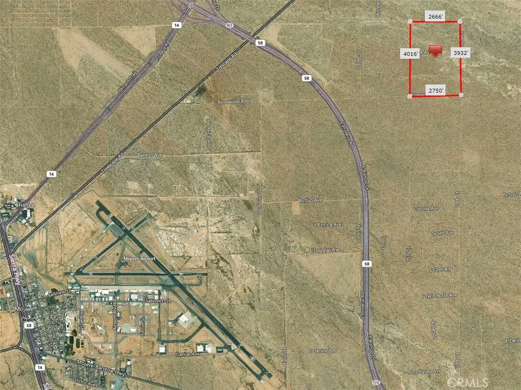 The listing price is for 40% share of 248+/- Acres of Vacant Industrial Land Zoned M-3 (Heavy Industrial) located Northeast of State Hwy. 58 and Hwy. 14 and Northwest of Hyundai Motor Group California Proving Ground, Mojave Air and Spaceport is to the Southwest. It has 2750′ Frontage on Rosewood Blvd. and 3932′ frontage on 20th St., Snake Ave goes through the property. Hwy. 14 is less than 2 miles away which gives you easy access to Rosamond, Lancaster, and Palmdale. Ideal for Cannabis, solar farming, truck stop, etc…