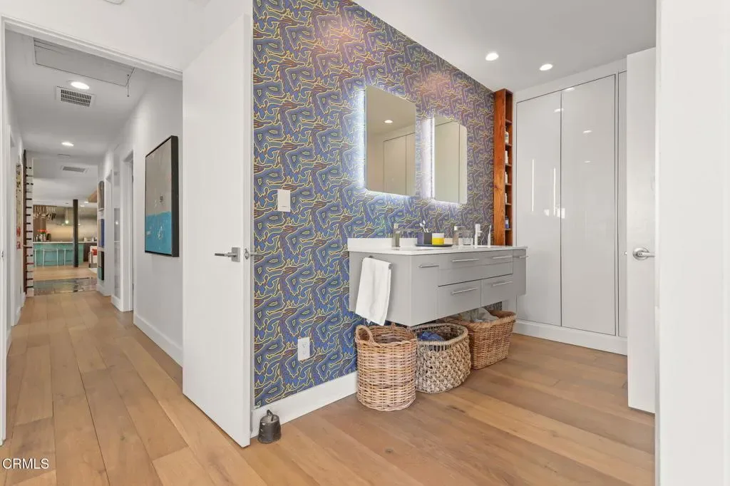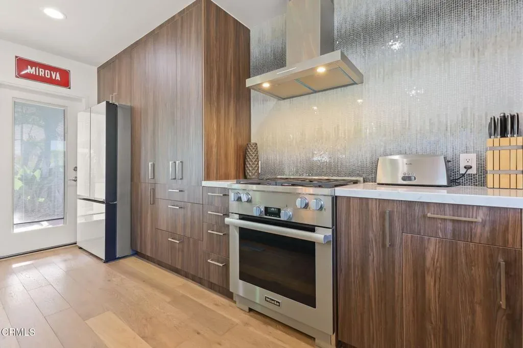 $91,000 Price adjustment with views to Catalina Island! This beautifully reimagined Mid-Century Modern retreat offers privacy, abundant natural light, and effortless California living. Set at the end of a cul-de-sac, on a generous 27,970 sq ft lot with endless views, this 3-bedroom, 2-bath home with a bonus office is a rare escape. At the heart of the home is a striking sunken living room with fireplace–warm, inviting, and effortlessly dramatic. Expansive windows flood the space with natural light and create a seamless connection to the outdoors, perfect for both everyday living and entertaining.Every detail has been thoughtfully curated, with over $200,000 in recent upgrades designed to elevate daily living. French oak engineered hardwood floors, solid wood interior doors, and custom stone and tilework add warmth and texture, while privacy roller shades and updated systems bring peace of mind. The primary suite is a true retreat, featuring a spa-inspired bath with designer tile and terrazzo flooring, custom designed California Closets, and a private patio with spectacular Los Angeles views. The kitchen is both beautiful and functional–fully remodeled with custom cabinetry, quartzite countertops, a generous island, and top-of-the-line appliances–ideal for cooking, entertaining, and connecting. Designed for indoor-outdoor living, the family room opens to a private, covered patio complete with comfortable couches and a built-in BBQ–an ideal setting for weekend gatherings, alfresco dinners, or unwinding with friends as the sun sets. The expansive grounds include RV parking, room for an ADU, and a 3-car garage offering exceptional flexibility for the future. Thoughtful touches like extensive lush landscaping, hardscaping, and programmable exterior lighting complete the spacious grounds.Just minutes from the charm of downtown Monrovia, scenic hiking trails, shopping, highly rated schools, and the 210 freeway, this home offers the perfect balance of serenity and convenience. A place to retreat, recharge, and truly feel at home.