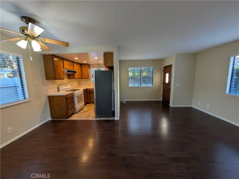 This inviting one-bedroom, one-bath home in Monrovia is ideal for a busy professional who values privacy, comfort, and a practical work-from-home setup. Enjoy the convenience of an attached two-car garage with direct access into the unit, along with in-unit washer and dryer hookups that make everyday living easy. The combined living and dining area offers a flexible layout that can comfortably accommodate a dedicated home office, with a ceiling fan and natural light creating a pleasant atmosphere throughout the day. An efficient galley kitchen features classic oak cabinetry, a double-basin sink, dishwasher, oven/range, and a refrigerator with an ice maker, providing everything you need in a smart, compact space. The spacious bedroom includes a walk-in closet and sliding glass door that opens to a private fenced backyard, giving you a quiet place to relax between meetings or unwind in the evening. The full bathroom, enhanced by a skylight, is accessible from both the hallway and the bedroom and includes a linen closet for extra storage. Additional features such as central air and heating and new window blinds make this home truly move-in ready for a modern professional. Situated as the middle home on a lot with two other residences—a two-bedroom and a three-bedroom—this property offers a welcoming residential setting with a sense of community while still feeling like your own place.
