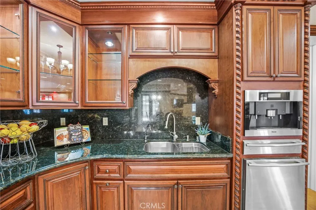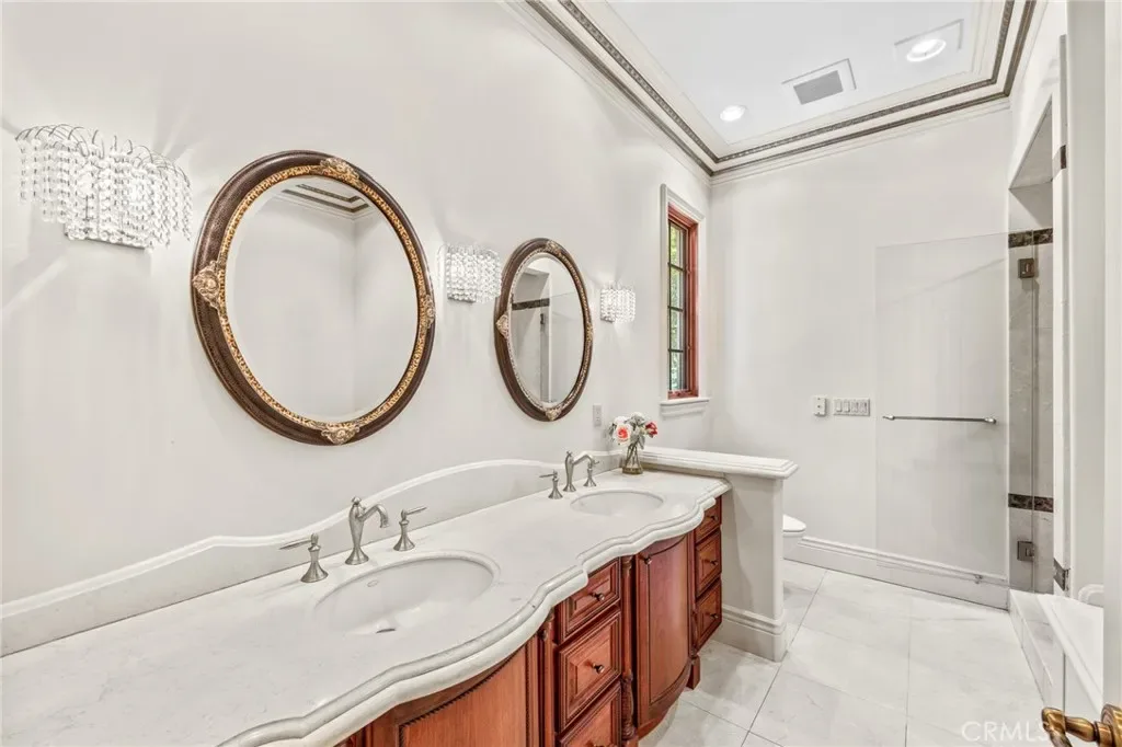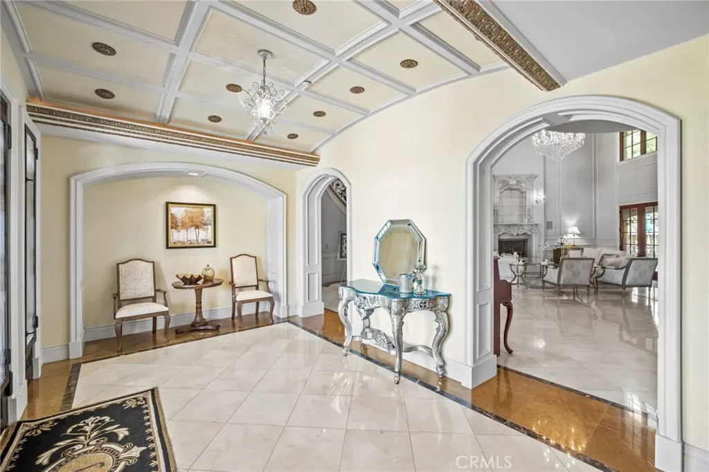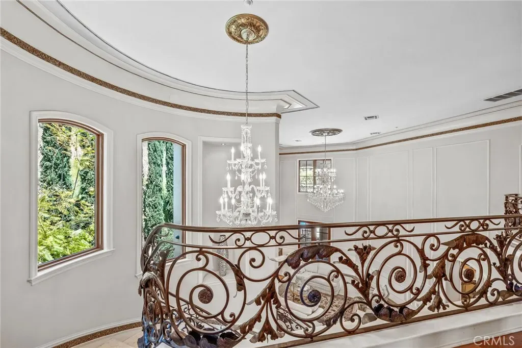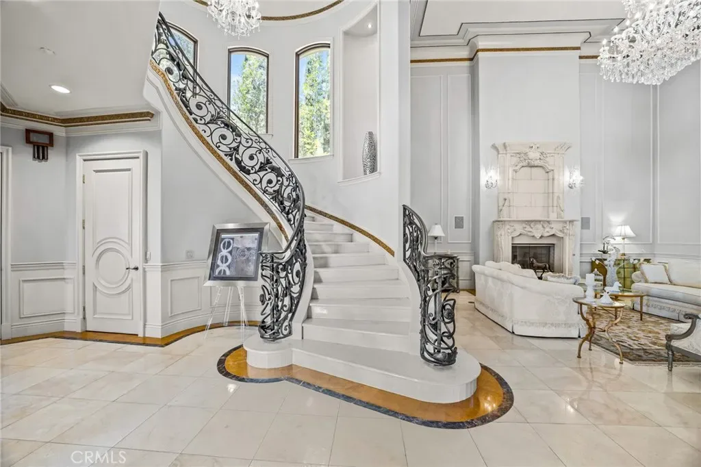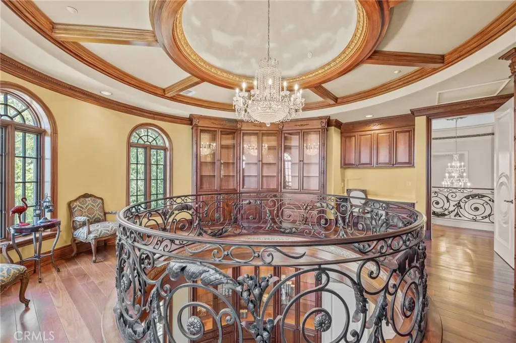 As you step through the custom glass and iron doors, the foyer unveils a world of opulence. The estate exudes grandeur, adorned with sparkling crystal chandeliers, exquisite marble floors, and ceilings that reach for the heavens. The state-of-the-art gourmet kitchen is a culinary enthusiast’s dream, equipped with two distinct prep areas: a Chinese Wok Style and a Japanese Teppanyaki Seafood Bar, meticulously crafted in Germany.