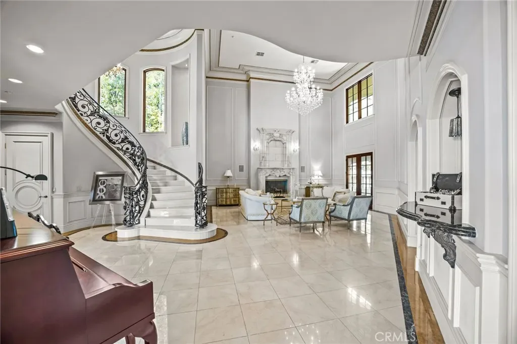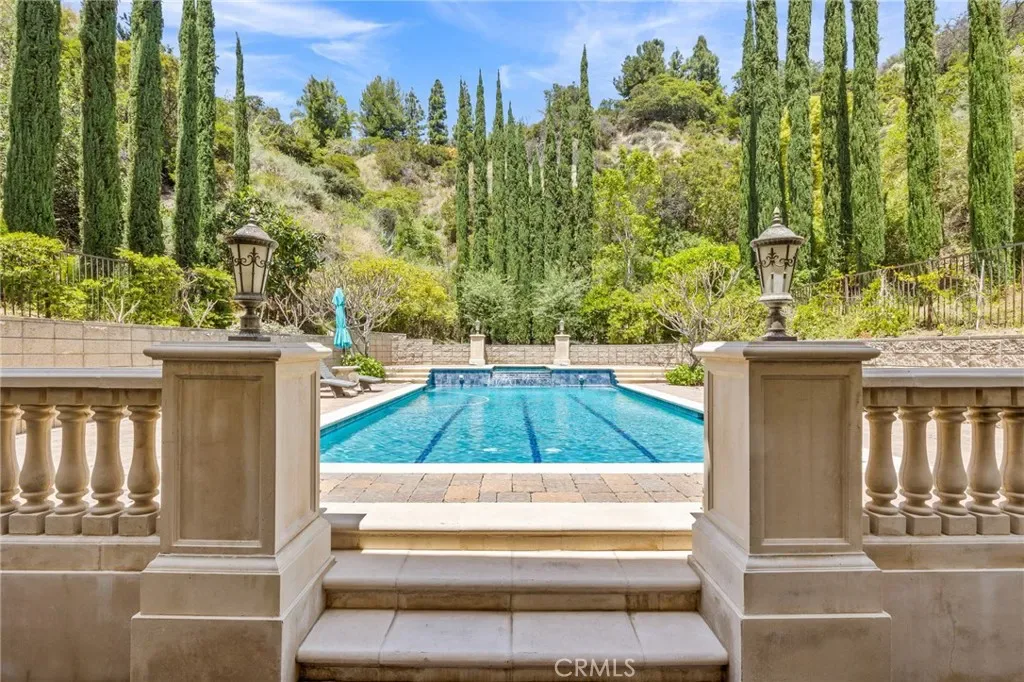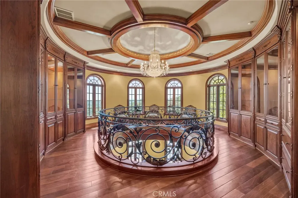 The first level of this palatial residence features a magnificent two-story circular library, an elegant formal living room with a cozy fireplace, a grand staircase that invites you to explore further, a family room with a fireplace to unwind in, a convenient laundry room, a bar area complete with a wine cooler, an elevator for seamless accessibility, a guest bathroom, a generously sized bedroom with an en-suite bathroom, and multiple patio areas beckoning you to bask in the serene ambiance. Among these outdoor spaces, one opens up to reveal a dazzling pool and spa, surrounded by majestic mountains that create an awe-inspiring backdrop. Ascending to the second floor, you will discover three stately bedrooms, each boasting its own bathroom adorned with jetted tubs for unparalleled relaxation. Expansive walk-in closets feature custom-built wooden organizers, catering to your every storage need. Private balconies offer a personal sanctuary, while a dedicated media room provides an immersive entertainment experience. For an unrivaled vantage point, step onto the magnificent covered balcony and revel in the awe-inspiring sunrises and sunsets that paint the sky in vibrant hues.