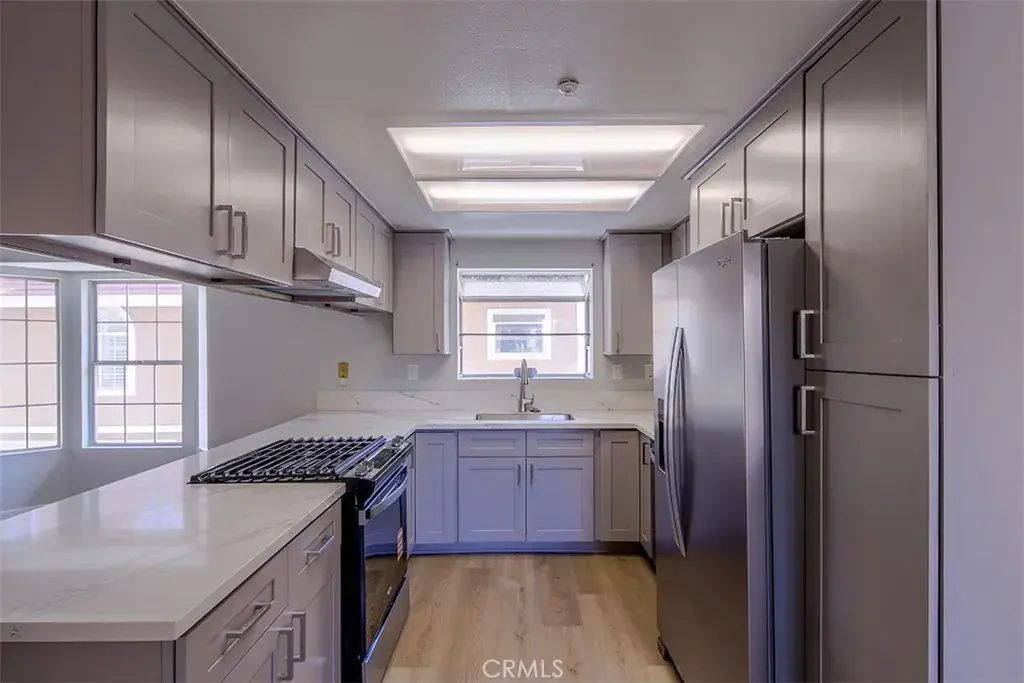 Welcome to 331 Genoa #E! This fully updated townhome is located in the Genoa Townhome community in Monrovia. The home features 3 bedrooms, 2 1/2 bathrooms and 1,094 square feet of living space. Open floor plan downstairs with updated kitchen with new cabinets, counters, sink, faucets, and new stainless steel appliances overlooking dining and living space. 3 bedrooms upstairs with primary bedroom with fully updated bathroom. The other two bedrooms are good size and share a fully updated bathroom. Access to large open patio with room for seating, storage and outdoor barbeque. Other features include; new vinyl waterproof floors and baseboards throughout; recessed lighting upstairs, freshly painted interior and plenty of natural light, newly installed lighting fixtures, new bathroom vanities and faucets in all bathrooms and laundry hookups in attached garage with direct access to unit. Located new shopping and Metrolink Gold Line. This townhouse is move-in ready and just waiting to be called HOME.