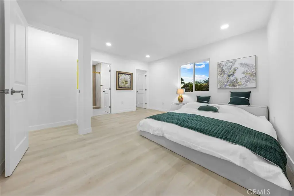 Welcome to this beautifully renovated single-story home in a quiet, desirable Monrovia neighborhood. Featuring a bright, open layout with new flooring and recessed lighting, the home offers seamless flow between the living room, dining area, and fully remodeled kitchen with modern cabinetry, quartz countertops, stainless steel appliances, and a spacious peninsula. The home includes four bedrooms and three updated bathrooms with floating vanities, gold fixtures, modern tile, and custom glass showers. Situated on a generous lot with a well-maintained front yard, long private driveway, and detached two-car garage, the property offers potential for additional storage or future ADU conversion (buyer to verify). The backyard provides ample space for entertaining, gardening, or enjoying the California sunshine. Conveniently located near parks, schools, shopping, dining, and freeways, this move-in-ready home combines modern style, comfort, and convenience in one of Monrovia’s most charming communities.