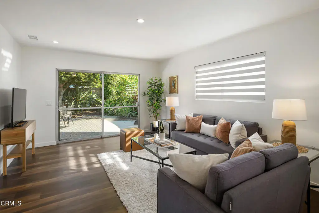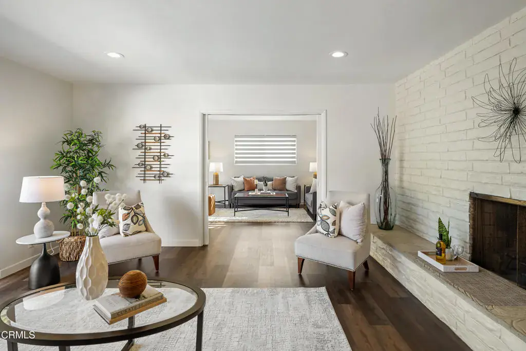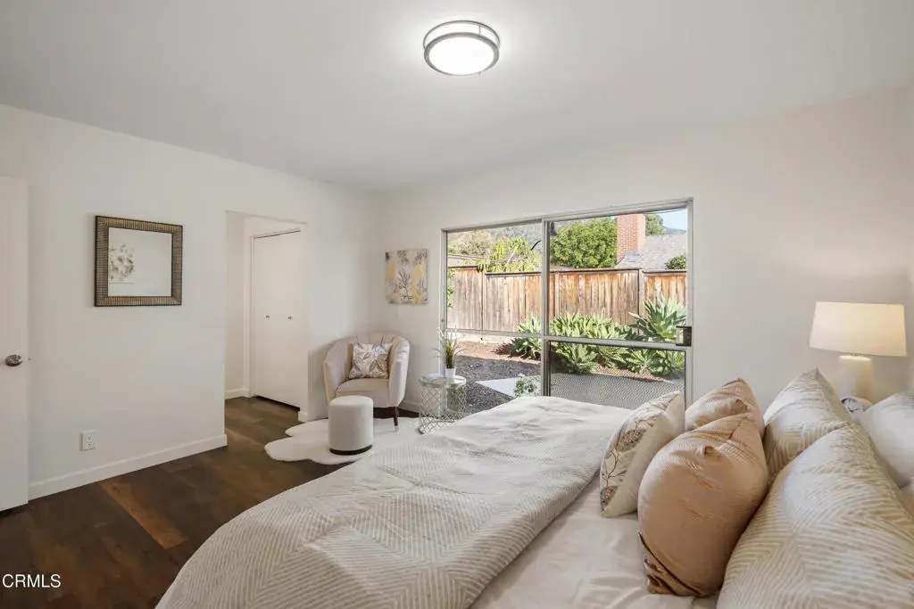 Set within a beautifully manicured Monrovia neighborhood with close proximity to the foothills & sweeping views south across the valley, this inviting residence offers comfort, functionality & a seamless indoor-outdoor connection. The driveway leads to a charming covered front porch & double-door entry. Inside, wood-look flooring flows throughout the home & recessed lighting creates a warm, cohesive feel in the main living spaces. Immediately to the right, the home opens to the dining area & updated kitchen, anchored by a raised fireplace & concrete bar-style countertop, perfect for casual gatherings or everyday living. The kitchen features Calacatta Quartz countertops, updated cabinetry, stainless steel appliances, including a gas range, range hood & a bay window above the sink. A direct door connects to the attached 2-car garage, which includes laundry & additional storage. Just beyond the kitchen, the family room offers recessed lighting, a pass-through window with counter seating ideal for entertaining & a sliding glass door that opens to the backyard patio. Pocket doors connect the family room to the living room, allowing for both open flow & private separation when desired. The living room is highlighted by a raised stone hearth fireplace, recessed lighting, wood-look flooring & another sliding glass door that enhances natural light & access to the outdoors. The backyard features a paved patio surrounded by mature fruit trees, creating a tranquil space for dining al fresco, relaxing, or hosting gatherings. A hallway off the living room leads to 3 bedrooms & 2 bathrooms. The first bedroom offers dual-pane windows & a generous closet. A second well-sized bedroom sits at the end of the hall, also featuring dual-pane windows. A full hallway bathroom includes a tub & shower combination, a dual-sink tiled vanity, recessed lighting & convenient linen storage nearby. The primary suite is privately situated on the opposite side of the hallway & features a spacious closet & a sliding glass door opening directly to the backyard patio. The ensuite bathroom includes an additional closet, oversized single-sink tiled vanity, recessed lighting & a tiled walk-in shower. With its thoughtful layout, inviting outdoor spaces, desirable Monrovia location near the foothills & moments from Old Town Monrovia’s shops, dining & entertainment, this home offers an exceptional opportunity to enjoy both comfort & scenery in a well-established neighborhood.