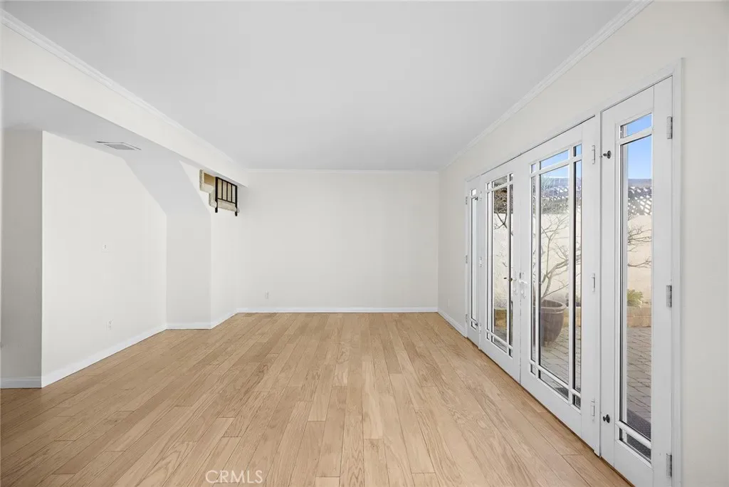 French doors open to a private courtyard-style breezeway with elegant stone pavers, perfect for morning coffee, outdoor dining, or unwinding in the fresh air. The clean and spacious two-car garage offers generous storage and parking.