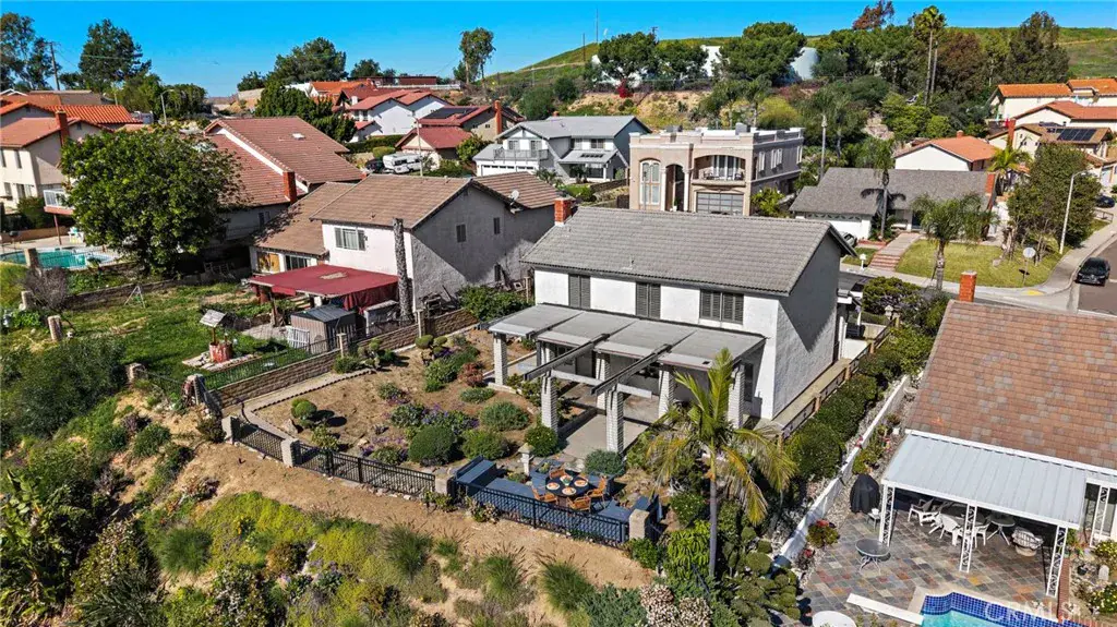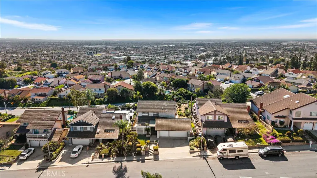 Enjoy spectacular panoramic views of South Downtown Los Angeles stretching all the way to Catalina Island from multiple vantage points throughout this two story, 3 bedroom 2.5 bathroom home, ideally situated in a well established traditional family neighborhood. As you enter the double entry doors, new neutral carpeting and fresh paint create a warm, inviting atmosphere in the formal living and dining areas, enhanced by abundant natural light.The well maintained kitchen shines with new stainless steel appliances and even rinsing and loading the dishwasher becomes a pleasure while taking in the scenic views from the kitchen sink window. The generously sized family room features a working gas fireplace, custom built-in cabinetry, with additional views of the backyard and beyond. This room is an ideal space for everyday living and entertaining. Upstairs, the spacious and private primary suite offers breathtaking views, a walk-in closet and an en suite bathroom designed just for you. Two additional bedrooms are served by a full bathroom with a tub/shower combination. Seamless indoor outdoor living awaits in the expansive backyard, complete with a large covered patio, tranquil Zen garden, and a viewing deck with built-in seating, perfect for unwinding after a long day. In the evenings enjoy dazzling city lights and on clear evenings, view the Disneyland fireworks. Additional highlights include a three car garage with direct access to the home.