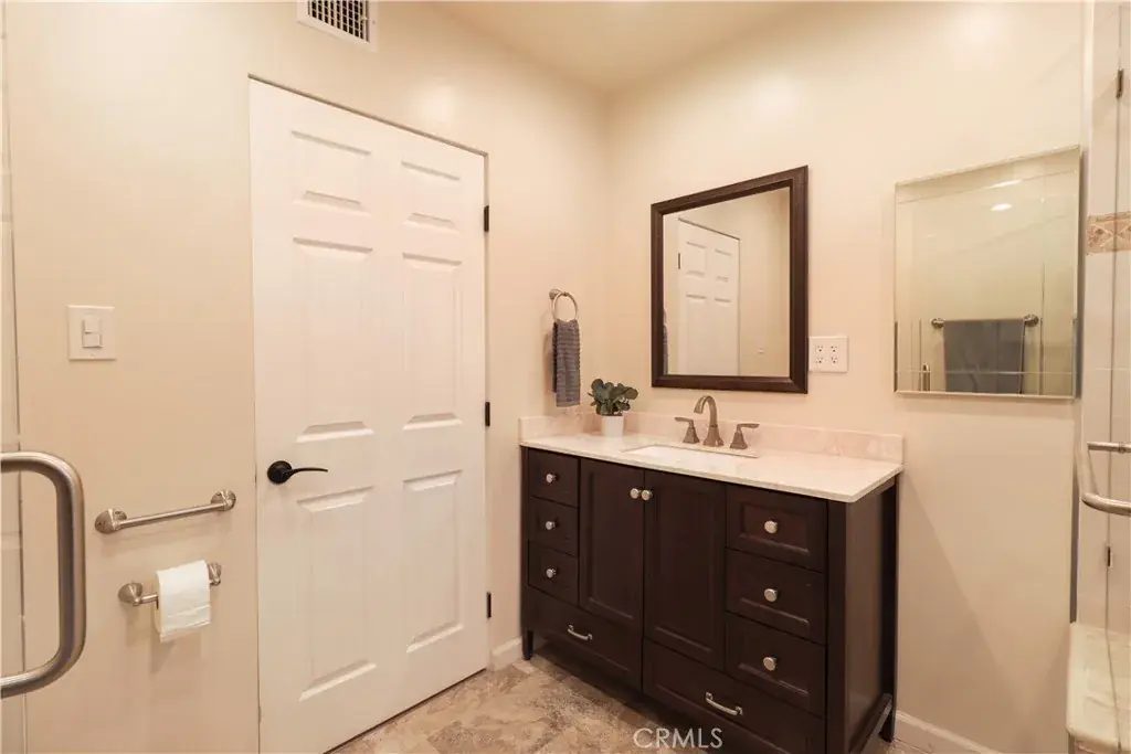 This home offers three private bedrooms, newer windows, and two bathrooms, including a remodeled main bathroom with an extra-large luxury walk-in shower, plus a convenient 2nd bathroom adjacent to the laundry area with convenient access to the backyard with pool and spa. The house includes a recently installed new air conditioning and heating unit.
