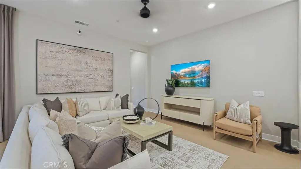 This three-story townhome is host to an open floorplan shared between the kitchen, living and dining rooms, with direct access to an outdoor room through sliding glass doors. A secondary bedroom at the back is ideal for overnight guests or a home office. A loft and three bedrooms occupy the second floor, while the top level has a spacious bonus room and outdoor terrace.