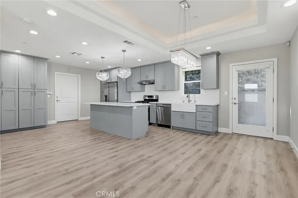 Experience the perfect blend of modern style and everyday comfort in this beautiful end-unit, newer 2021 built townhome. This 3 bedroom, 3 bathroom home spans 1670sf and offers the peace of mind for major systems that comes with newer construction, including a tankless water heater, dual-pane windows, and high-efficiency HVAC. Since it’s an end unit sharing only one wall, the home feels extra private and bright. The main floor is made for entertaining, featuring a full bathroom and clean laminate flooring, recessed lighting, and a contemporary kitchen finished with quartz countertops, modern grey cabinetry, and stainless steel appliances. All bedrooms are upstairs and in a rare find, even the secondary bedrooms come with their own walk-in closets, ensuring everyone has plenty of storage. The primary suite is a true retreat, complete with a dual-vanity ensuite, while all bathrooms throughout the home feature stylish tile work and modern vanities. Beyond the interior, you’ll love the convenience of the oversized two-car garage and the low $260 monthly HOA, which covers your insurance and trash. Best of all, you’re located in the highly sought-after Mark Keppel High School district, putting you right in the heart of everything Monterey Park has to offer.