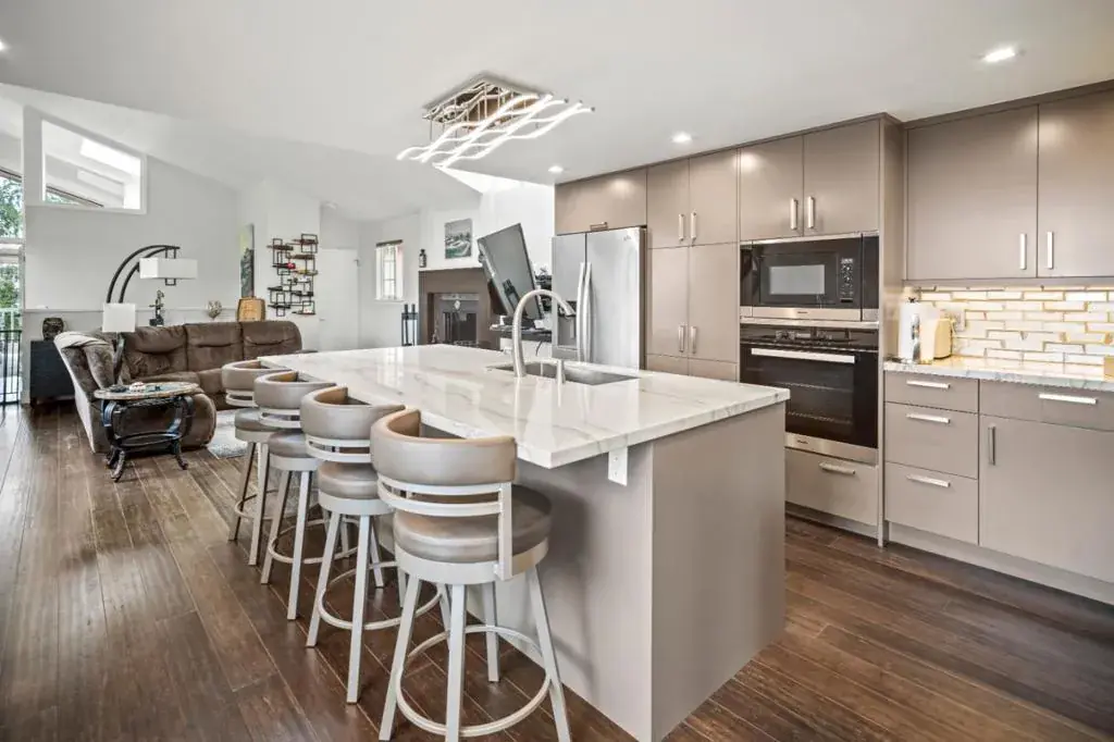 Spacious gem in heart of New Monterey…Bay views!…City light views!…Santa Cruz Mountain views!…Orange glow skies at sunset!…Lots of light throughout…Centrally located to Cannery Row, Pacific Grove, Pebble Beach…Reverse flr pln w/bamboo flrs…Vaulted ceilings…Huge atrium windows…Fantastic, modern updates throughout, especially in kitchen with high-end Miele appliances…huge island…soft-touch cabinets…beautiful tile-work…Newly remodeled primary bath with gorgeous walk-in shower and huge skylight…Expansive, panoramic views across bay fill 3d flr bed…Great primary suite w/awesome views through wall of windows…More vaulted ceilings…Composite lower/upper decks in back yard…with hot tub….appx 1900, 4/2.5=Fabulous ocean view retreat! Must see today! ***Seller open to carry options.