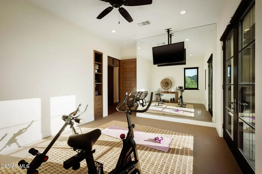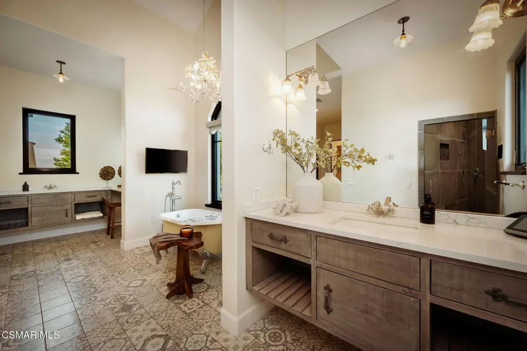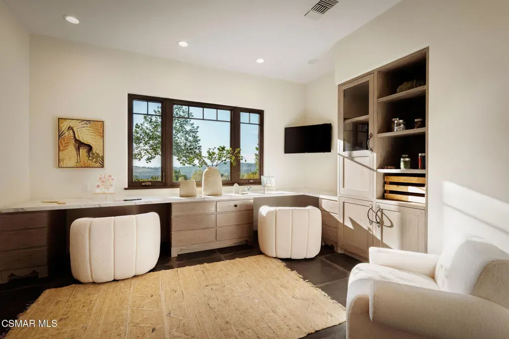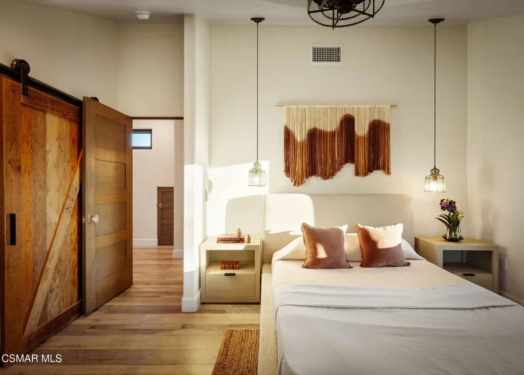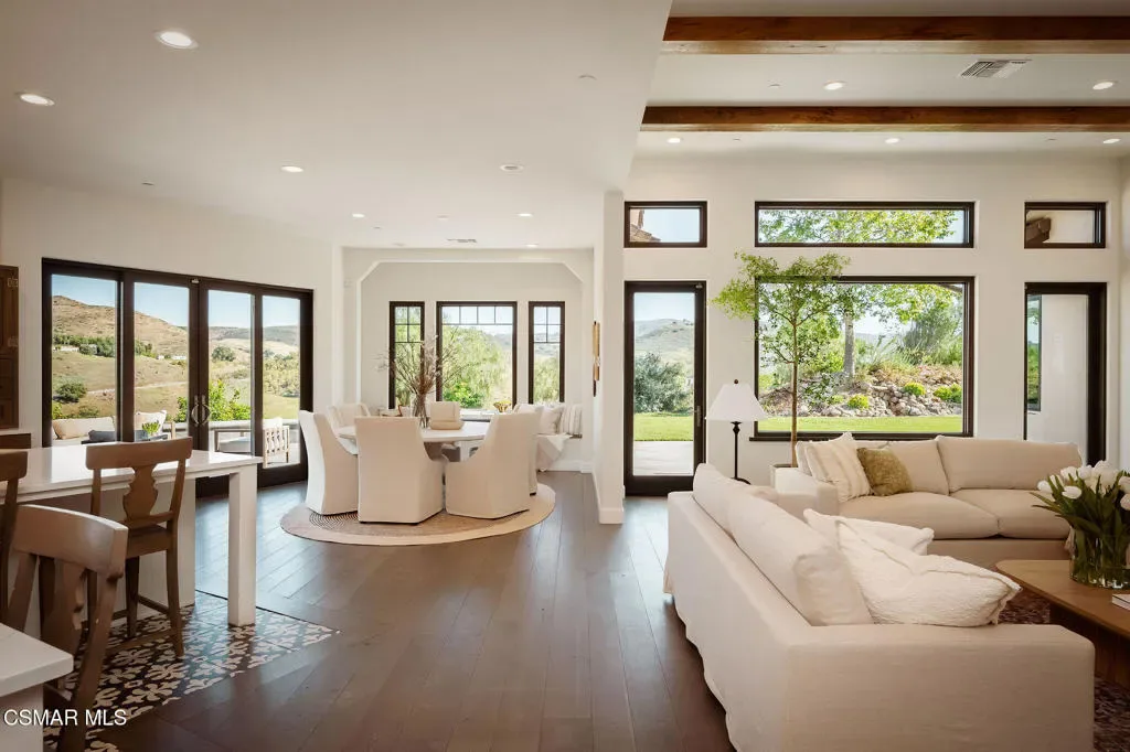 Lapeyre Ranch, an incredible opportunity in Moorpark… and this one is truly something special. Set across 10 acres of rolling, usable land, 15645 Lapeyre Road offers a rare and compelling blend of modern farmhouse living, income producing agriculture and fully realized equestrian amenities; all framed by sweeping views and endless open sky.Privately positioned at the top of the property, the newly refreshed 4,937 square foot residence captures breathtaking panoramic vistas from nearly every angle. Designed in a warm, modern farmhouse aesthetic, the home features expansive open concept living spaces, wide plank wood floors and beautiful exposed beams that create both volume and intimacy. The heart of the home is a stunning chef’s kitchen, complete with a large center island, custom cabinetry, statement range and sunlit breakfast area. All seamlessly connected to the main living and dining spaces for effortless entertaining.Walls of windows and doors open to an inviting outdoor setting, where a built in BBQ, firepit lounge, and multiple seating areas overlook the surrounding orchards, barn and distant hills; creating the ultimate indoor/outdoor lifestyle.With 8 bedrooms and 3.5 baths, the home offers incredible flexibility for extended family, guests or a live/work dynamic.Beyond the residence, the property unfolds into a truly special ranch environment. Approximately 1,600 flourishing avocado trees and 425 Tango tangerine trees provide meaningful income potential, while the equestrian facilities are both functional and thoughtfully designed. A classic red barn with oversized stalls and corrals sits alongside a large riding arena, ideal for recreational riding. In addition, a substantial 40′ x 60′ detached shop/garage provides exceptional space for equipment, vehicles, storage, or all of your ranch needs–an incredibly valuable and versatile addition to the property.A private swimming pond with dock adds a rare and tranquil element, offering a peaceful retreat and a true connection to the land. Gently sloping acreage, mature landscaping and wide open space create a setting that feels both expansive and serene.This is a privately gated property where lifestyle, land and opportunity come together seamlessly. Whether you’re seeking a working ranch, an equestrian retreat or a private estate with income producing potential….15645 Lapeyre Road is more than a home… it’s a destination.