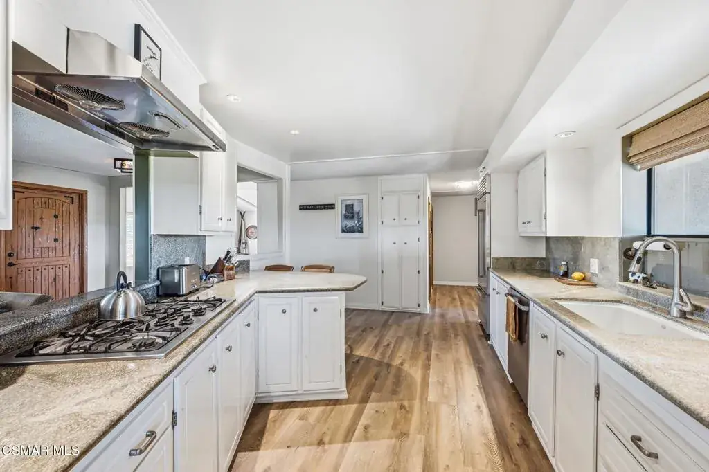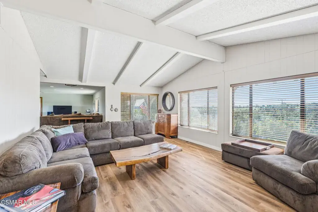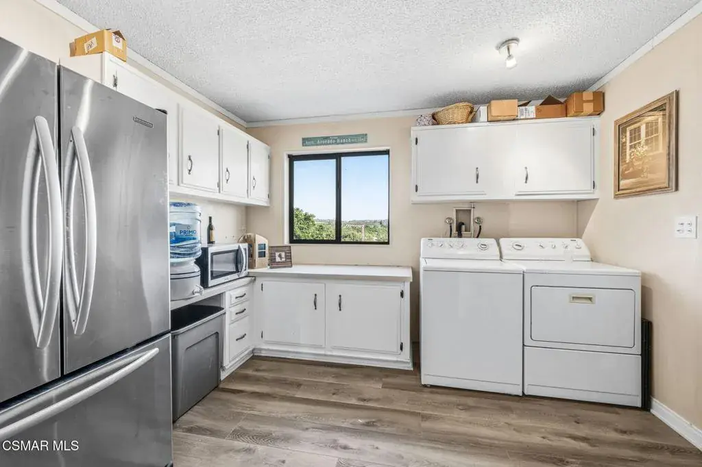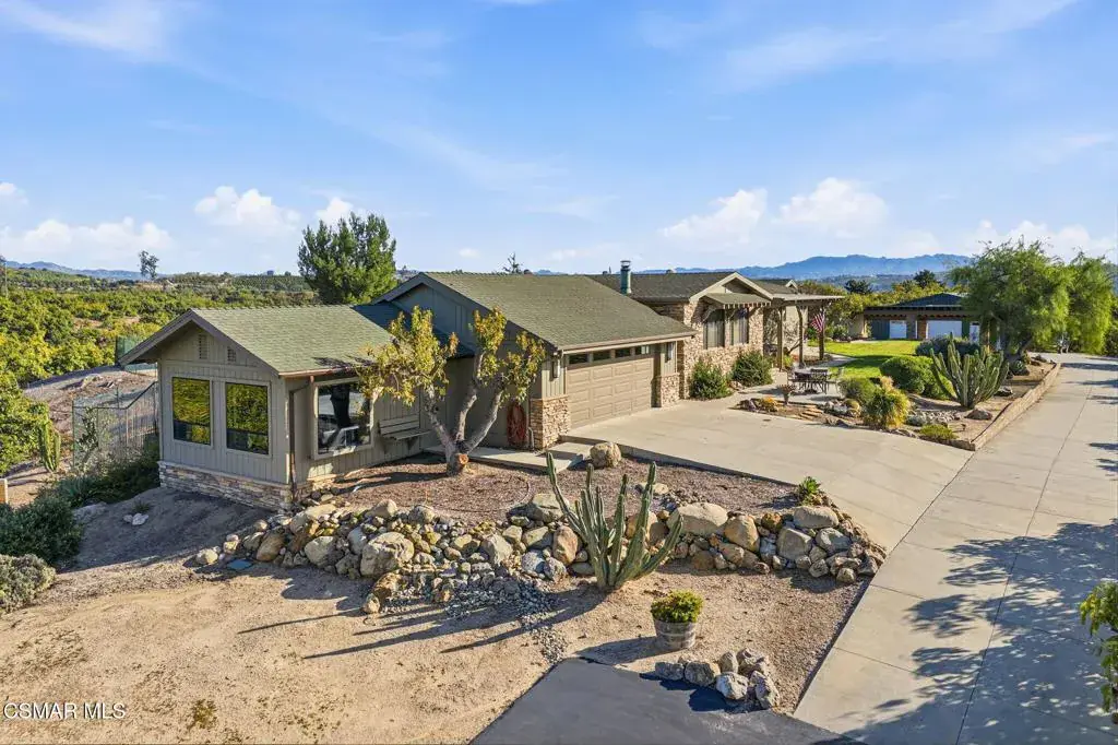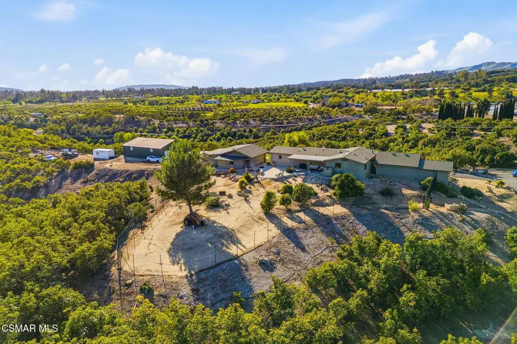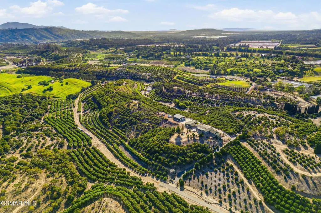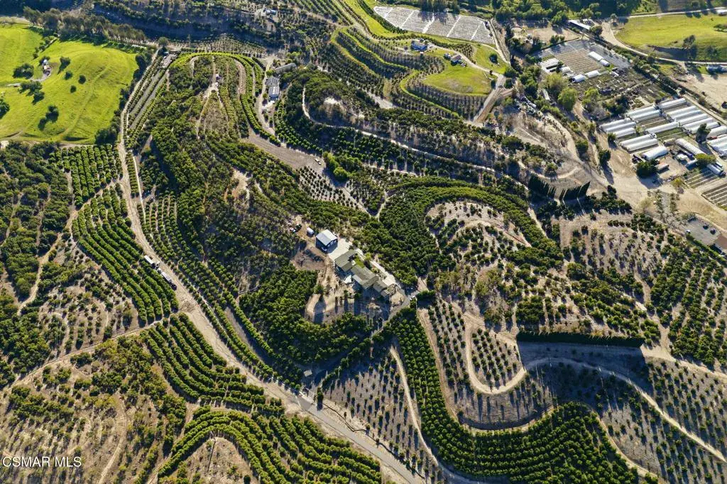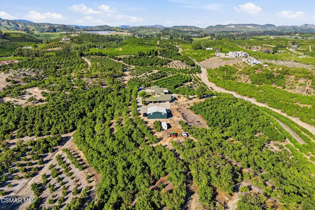 Set on 20.5 acres of producing avocado and lemon groves, this exceptional ranch offers privacy, income potential, and breathtaking 360-degree panoramic mountain and valley views. Garage space for up to 15 cars. The orchard is actively producing and generating hadsome, consistant annual income, making this a rare opportunity to own a working agricultural estate with strong investment appeal.The 2,160 sq. ft. single-story modular home features 3 bedrooms and 2 bathrooms, a fireplace, spacious living room and family room, dedicated laundry room, updated windows, and a beautifully renovated interior with waterproof vinyl plank flooring throughout. Expansive windows showcase stunning views from every room. The home, and all the other structues is protected by automatic backup generator for added reliability and peace of mind.Outdoor living is highlighted by two covered patios with sweeping views of the Santa Monica & Topa topa mountain and valley views, ideal for relaxing or entertaining. The expansive backyard is fully enclosed with an 8-foot green chain-link perimeter fence and offers abundant space for a custom pool, a another ADU option, or outdoor entertainment area.A long asphalt driveway lined with mature trees leads to a gated entry with lighted automatic gates, creating a grand and private arrival. The property features paved access roads and includes four single-story wood-framed structures built to code, offering versatility for residential, agricultural, or operational use.The land is supported by a 325 GPM AG water well installed in 2013 with The county water master 36.34 acre feet allocation. along with drought-tolerant landscaping on automatic sprinkler systems sourounding the home and other buildings..Additional improvements include a 5000 sq ft stoarge yeard with 8′ high fence and privacy clothe and 20 foot wide entry gate , an 1,800 sq. ft. metal building with electrical service and roll-up doors built in 2017, a three-car garage, and a 500 sq. ft. carport for ample vehicle and equipment storage. A private 725 sq. ft. studio ( ADU ready) with full bath, closet, and kitchen provides excellent guest, and yet another oversized garage with huge gym space for staff, or rental potential.This unique property blends income-producing agriculture, multiple structures, resort-style outdoor living, and unmatched privacy–an extraordinary ranch estate with endless possibilities.