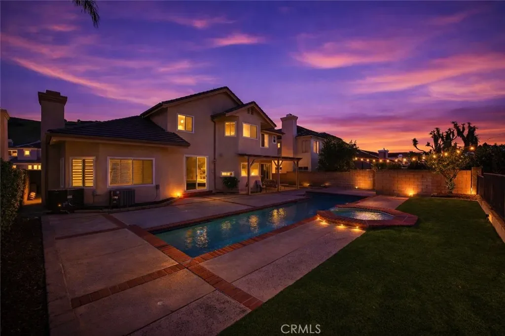 As you step through the front door, you’re immediately greeted by soaring ceilings, abundant natural light, and a thoughtfully designed layout that provides flexibility for both everyday living and entertaining. Wood floors, plantation shutters, and architectural details add warmth and sophistication throughout. A convenient downstairs bedroom with attached ensuite bathroom offers the ideal setup for guests, multigenerational living, or a private home office. The upgraded kitchen features granite countertops, stainless steel appliances, a center island, ample storage, and flows seamlessly into the main living areas perfect for gatherings of any size. Upstairs, the primary suite offers stunning views, a sitting area, and a beautifully upgraded ensuite with dual sinks, a soaking tub, separate shower, and walk-in closet. Three additional bedrooms provide spacious accommodations and privacy, complemented by remodeled secondary bathrooms. Step outside to enjoy true Southern California living in the backyard, complete with a sparkling pool and spa, privacy, and partial views, an ideal setting for relaxing or entertaining. Major upgrades include a newer roof, newer HVAC systems(2), updated kitchen, updated bathrooms, dual-pane windows, a refinished pool, rain gutters, updated fireplace inserts, and fresh exterior paint. Located in one of Moorpark’s most desirable neighborhoods, this exceptional home offers a rare combination of location, layout, views, and upgrades. A must-see opportunity in Buttercreek Estates.