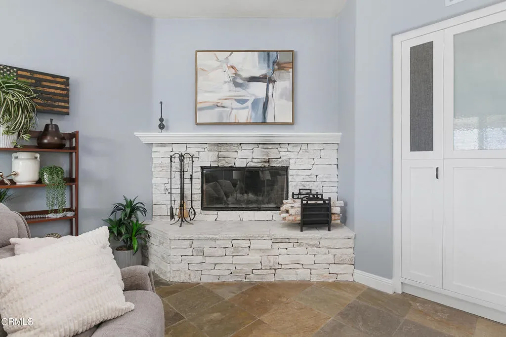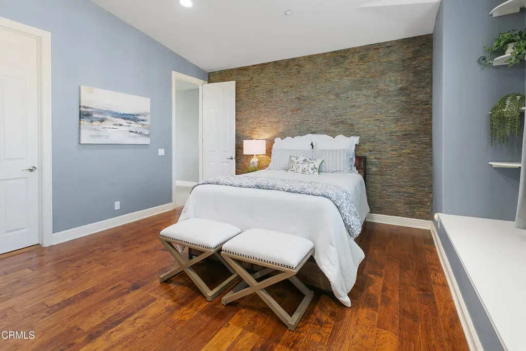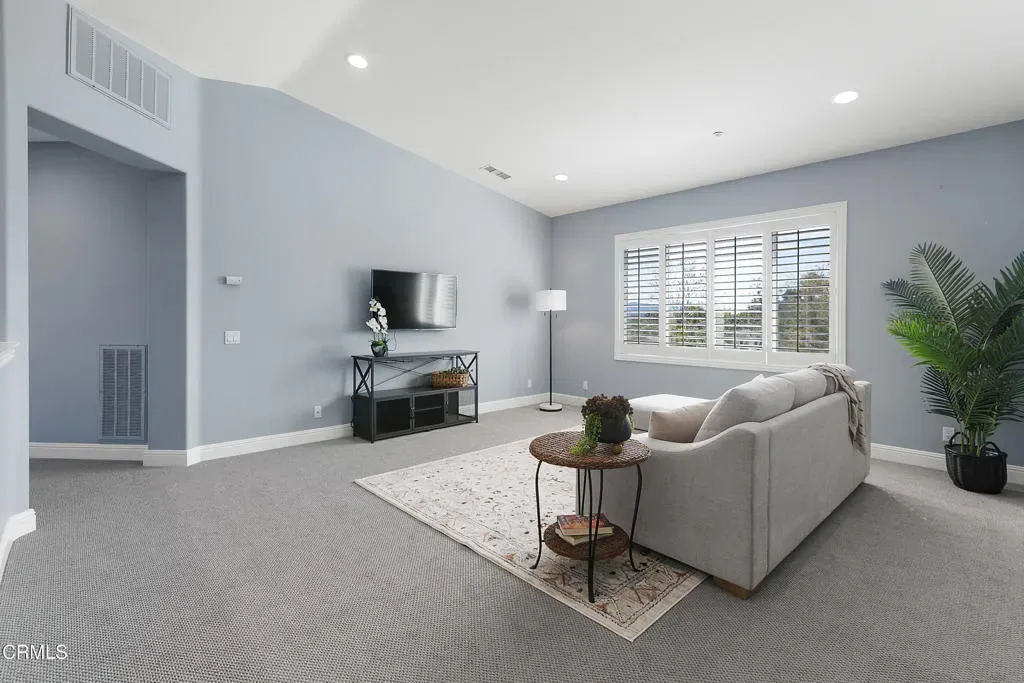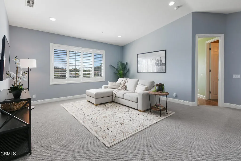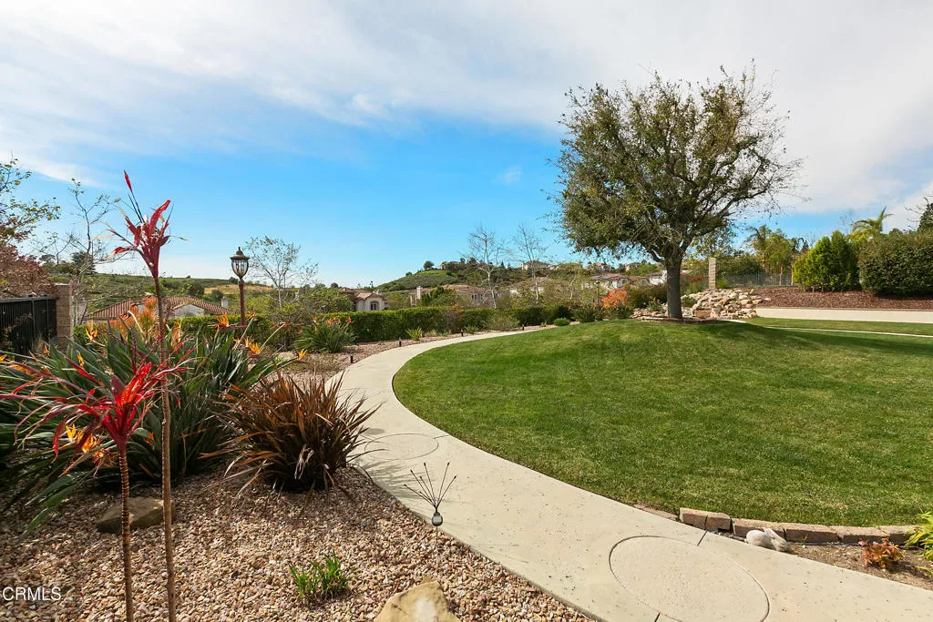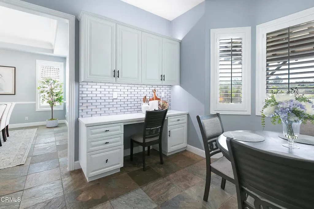 Nestled in the foothills of Moorpark Country Club within the prestigious gated community of Moorpark Country Club Estates, seamlessly combines elegance, comfort, and resort-style living. Breathtaking mountain views and overlooking a scenic 27-hole championship golf course, this beautifully remodeled, move-in-ready home offers the ultimate in luxury and lifestyle. Step into an impressive foyer highlighted by soaring ceilings and a sweeping staircase that sets the tone for the home’s refined design. The formal living and dining rooms are perfectly scaled for intimate gatherings and are enhanced by picturesque yard views that create a warm and inviting atmosphere. Adjacent to a charming breakfast nook and spacious breakfast bar, the fully remodeled kitchen showcases sleek quartz countertops, modern custom cabinetry, high-end appliances, abundant counter space, and designer finishes throughout. Thoughtfully designed for both functionality and style, the kitchen opens seamlessly to the family room, complete with beautifully crafted built-in entertainment and bar cabinetry, creating an ideal setting for both everyday living and entertaining. The flexible floor plan features a convenient downstairs bedroom with en-suite bath, ideal for guests or multigenerational living. A secondary staircase provides convenient access to the upper level, where three additional bedrooms each offer private en-suite baths, along with a luxurious junior suite and an impressive primary suite featuring expansive windows that flood the space with natural light. With five spacious bedrooms and five and one-half remodeled bathrooms, comfort and sophistication are evident at every turn. Resort-inspired outdoor living elevates this property to another level, featuring a sparkling in-ground swim spa, expansive 15-person fire pit, newly poured driveway with RV parking, and an electric vehicle hookup. There is ample space to add a sport court or full-sized pool. Solar and a whole-home generator provides added peace of mind, and the garage includes custom built-in cabinetry for exceptional storage. Fresh interior paint, plantation shutters, fully remodeled bathrooms, and curated designer touches throughout complete this exceptional offering.