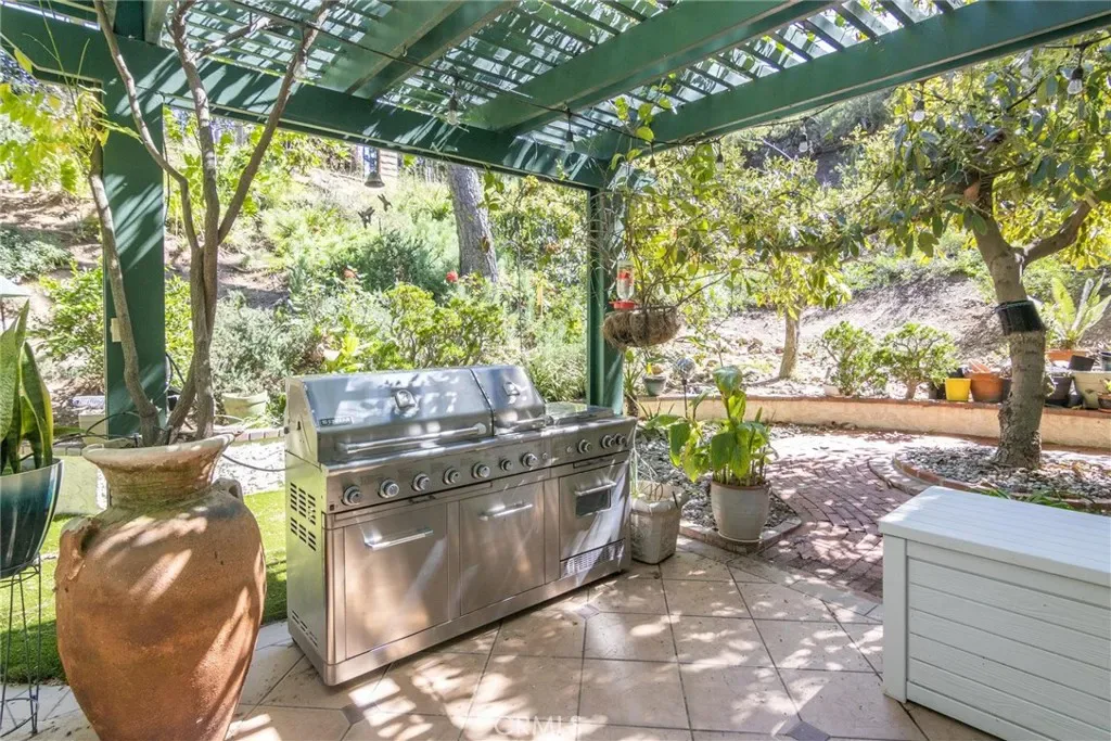 Private and exclusive at the end of a cul-de-sac, this home has a beautiful interior and a lush exterior. From the moment you enter this home, the cool, calm, relaxed environment surrounds you. From the beautiful parlor in the front of the house to the lush patio and pergola at the back there are numerous places to relax with friends and family. Enjoy the beautiful foliage, including mature producing avocado trees. Expanded and remodeled, this home includes a bespoke entertainers’s kitchen open to the dining area, the family room and leading out to the patio for larger gatherings, intimate get-togethers or family events. In addition to 4 bedrooms and 3.5 baths, a home office is located at the top of the stairs.