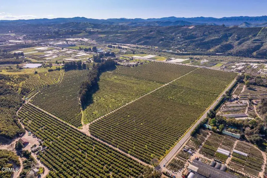 Lemon/Avocado Grove This property with level topography has a strategic location with frontage along both Highway 118 (L.A. Avenue) and Balcom Canyon Road, positioned just outside the City of Moorpark. The dual road frontage provides excellent access and visibility, which is particularly valuable for agricultural operations requiring transportation of goods and equipment.Climate and Growing Conditions: Property is subject to Bankruptcy Court Approval and Overbid.The property benefits from Ventura County’s Mediterranean climate, which is characterized by mild winters, warm summers, and limited rainfall. This climate is ideal for diverse agricultural pursuits, particularly for high-value crops like avocados, which are being grown on the property. Mediterranean climates typically feature:Warm, dry summers with temperatures rarely exceeding 95F.Mild winters with minimal frost risk,Annual rainfall typically between 15-25 inches.Water Resources:The property has two water sources:A private well producing approximately 900 gallons per minute (GPM), for agricultural operations with allocations, 2,025 shares in the Berylwood Heights Mutual Water Company as a backup water source. This water supply is an added benefit for agricultural operations. Land Characteristics:The property’s 134.64 acres are divided into: 3 parcels 503-0-040-123,130,140 with access roads and utility areas.Infrastructure:Zoning:The AE-40 zoning (Agricultural Exclusive, 40-acre minimum lot size) applies to all three parcels. This zoning typically limits non-agricultural development maintaining the character of the area. An LCA Contract under the Williamson Act (#51-4.140), provides additional property tax relief.Development Potential:The property location between the City of Moorpark and the City of Camarillo suggests potential long-term development value, though the current AE-40 zoning would require changes for any significant alterations in the land use.