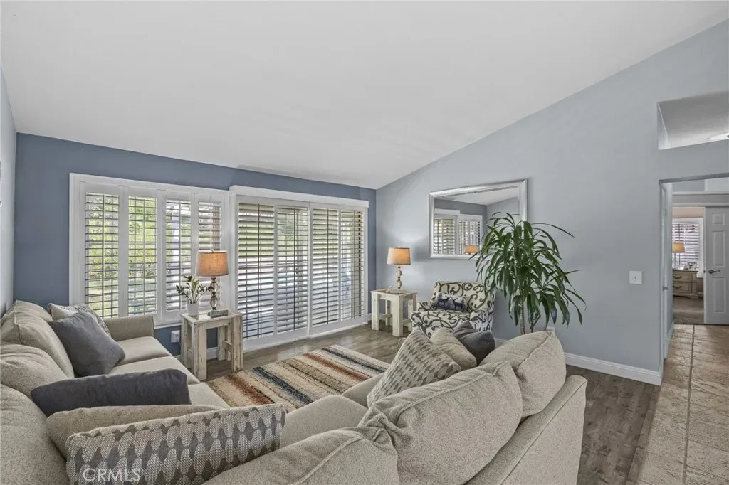 Step through a beautiful entry into the inviting living room, flowing seamlessly into an open-concept remodeled kitchen featuring quartz countertops and a breakfast nook with a pool view—perfect for everyday living and entertaining. Additional features include updated flooring and plantation shutters throughout.