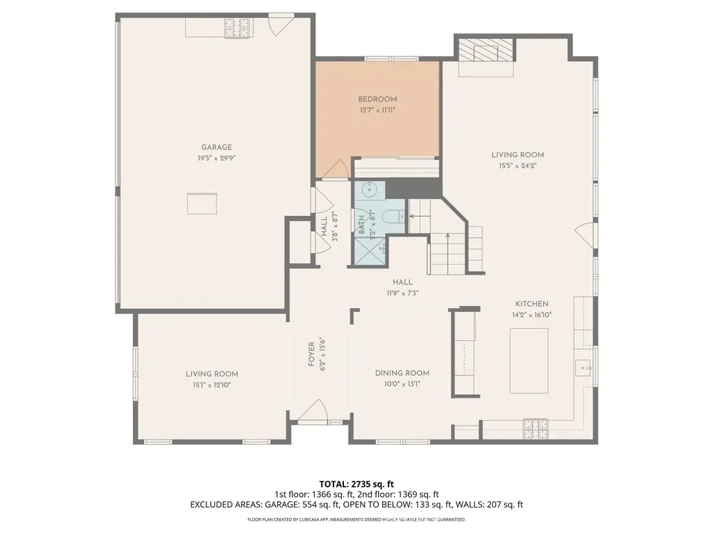 This home offers 5 bedrooms and 3 bathrooms with 2,841 square feet of living space, including one bedroom and full bathroom downstairs. The kitchen is open to the family room, creating a comfortable space for everyday living and gatherings.