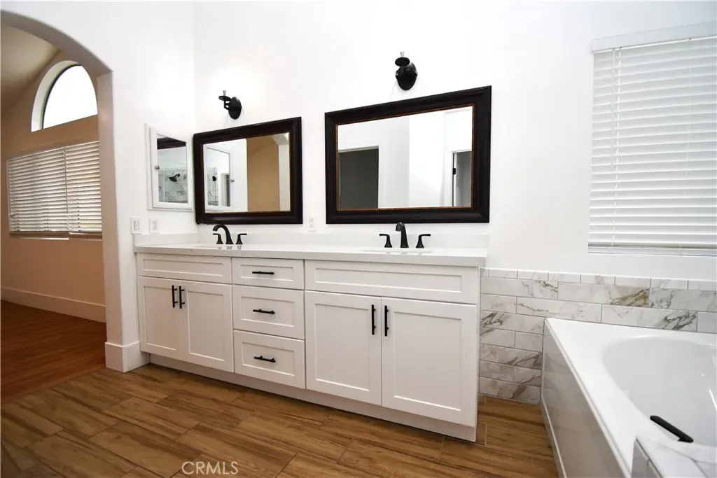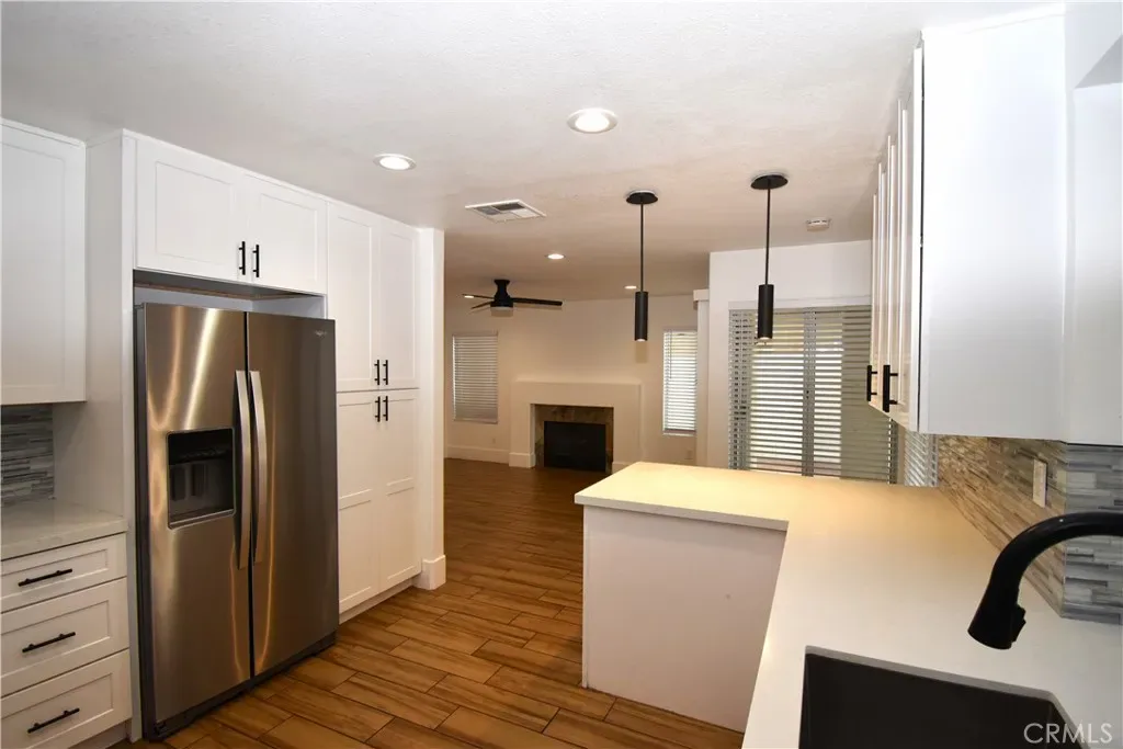 WOW!!! Beautiful modern 4-bedroom/2.5-bath home located in the desirable Moreno Valley Ranch area– 1,907 square feet of open living space… this home went through a recent extensive remodel (over $110K) and is gorgeous. Walk through the front door entry into the spacious living room with dramatic high ceiling and natural lighting. There is natural and recessed lighting all through the home. Flooring includes tile throughout and vinyl plank in the bedrooms. Family room includes a fireplace and opens to the kitchen area – and the kitchen – beautifully updated with modern cabinets, countertops, lighting and stainless appliances. All bathrooms have been updated, second full bathroom has dual sinks; all four bedrooms are located on the upper level; the primary bathroom includes dual sinks, shower and separate tub. The remodel included a recent new water heater, AC unit and furnace. Laundry area is located on the first level inside the home. The 3-car garage is large and very clean. The family room and formal dining areas provide access to the landscaped backyard with hardscape and custom patio cover – all ready for gatherings and entertainment. Low cost HOA includes a pool, BBQ and picnic area, playground, clubhouse and fitness area. Located near the 215 and 60 freeways, parks, schools, Lake Perris, restaurants and minutes from the March Field/Moreno Valley Metrolink station. Excellent curb appeal – This home is move-in ready.